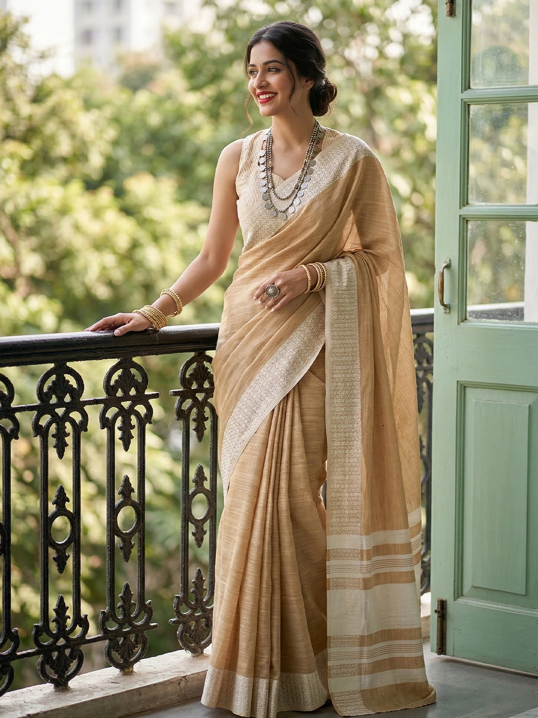 Saree Fabric Linen with Lakhnavi Border