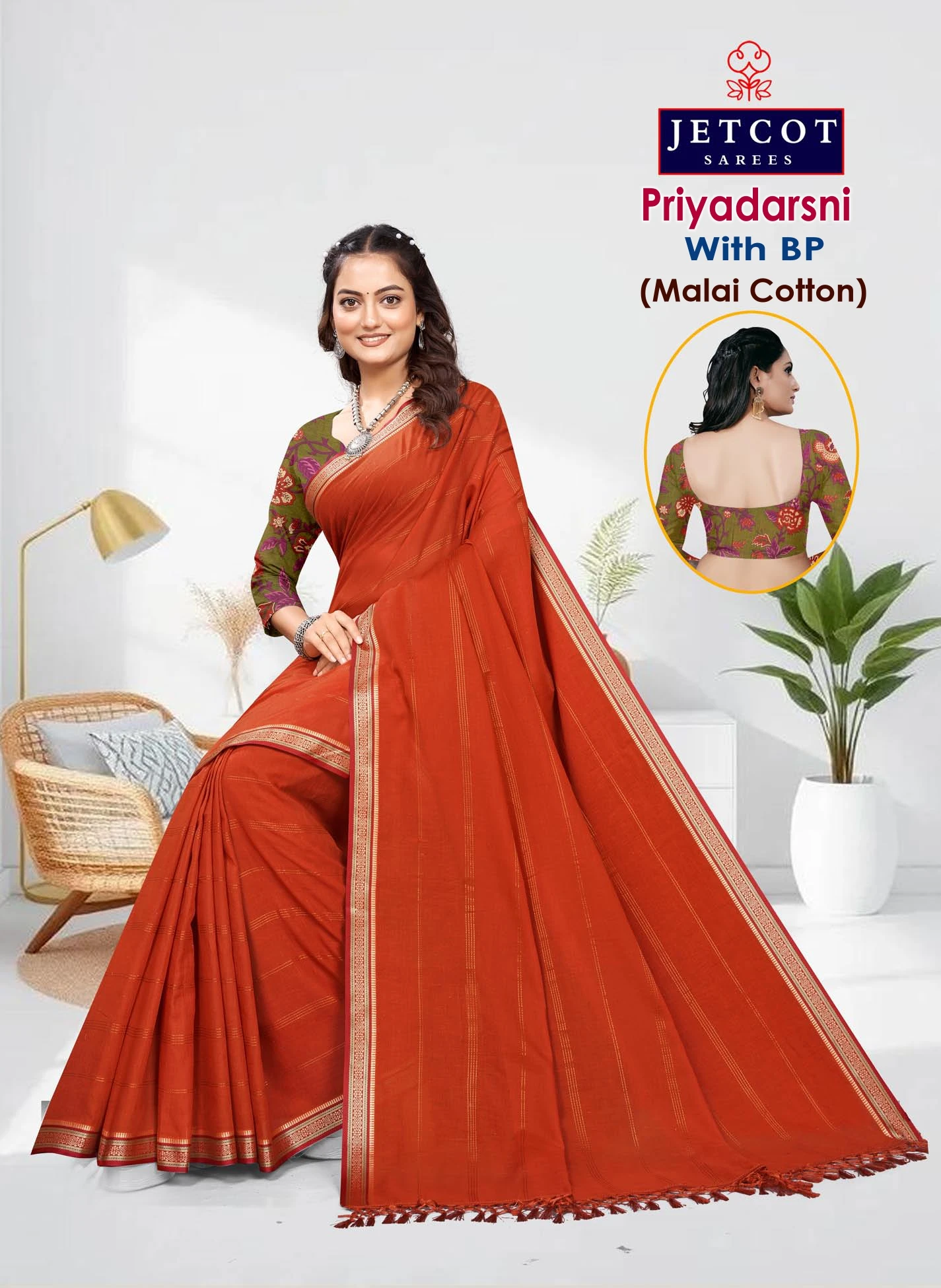 Material Pure Malai Cotton Printed 5.5 Meters with 0.8 Meters Blouse Brand: Jetcot