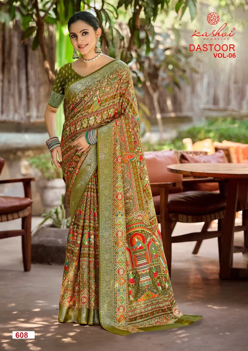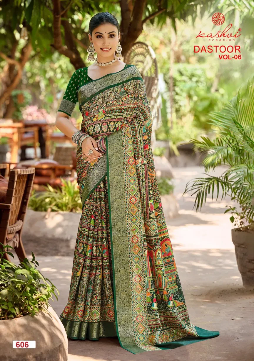 | Product Name | Kashvi Dastoor Vol 6 Viscose Bright Moss Foil Casual Wear Saree Collection |