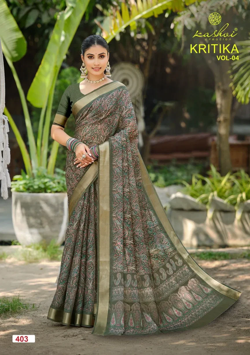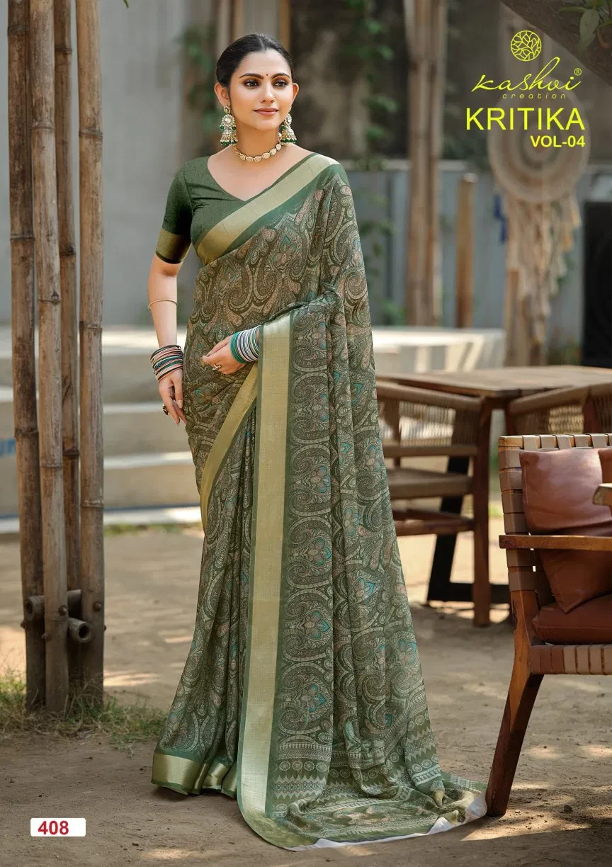 Kashvi Kritika Vol 04 Dull Moss Kasab Fancy Saree Collection
