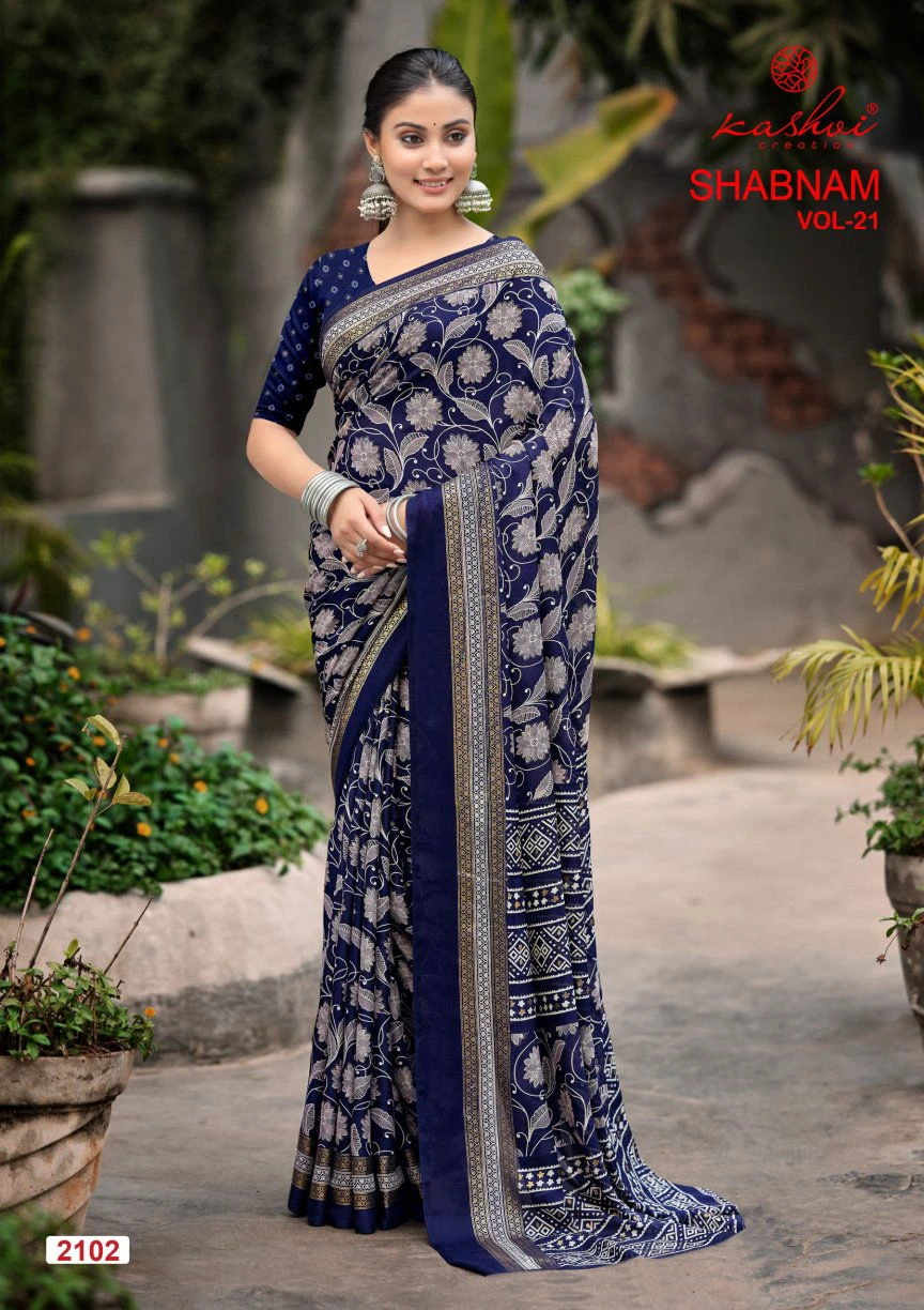 Kashvi Shabnam Vol 21 Dull Moss Foil Printed Fancy Saree Collection