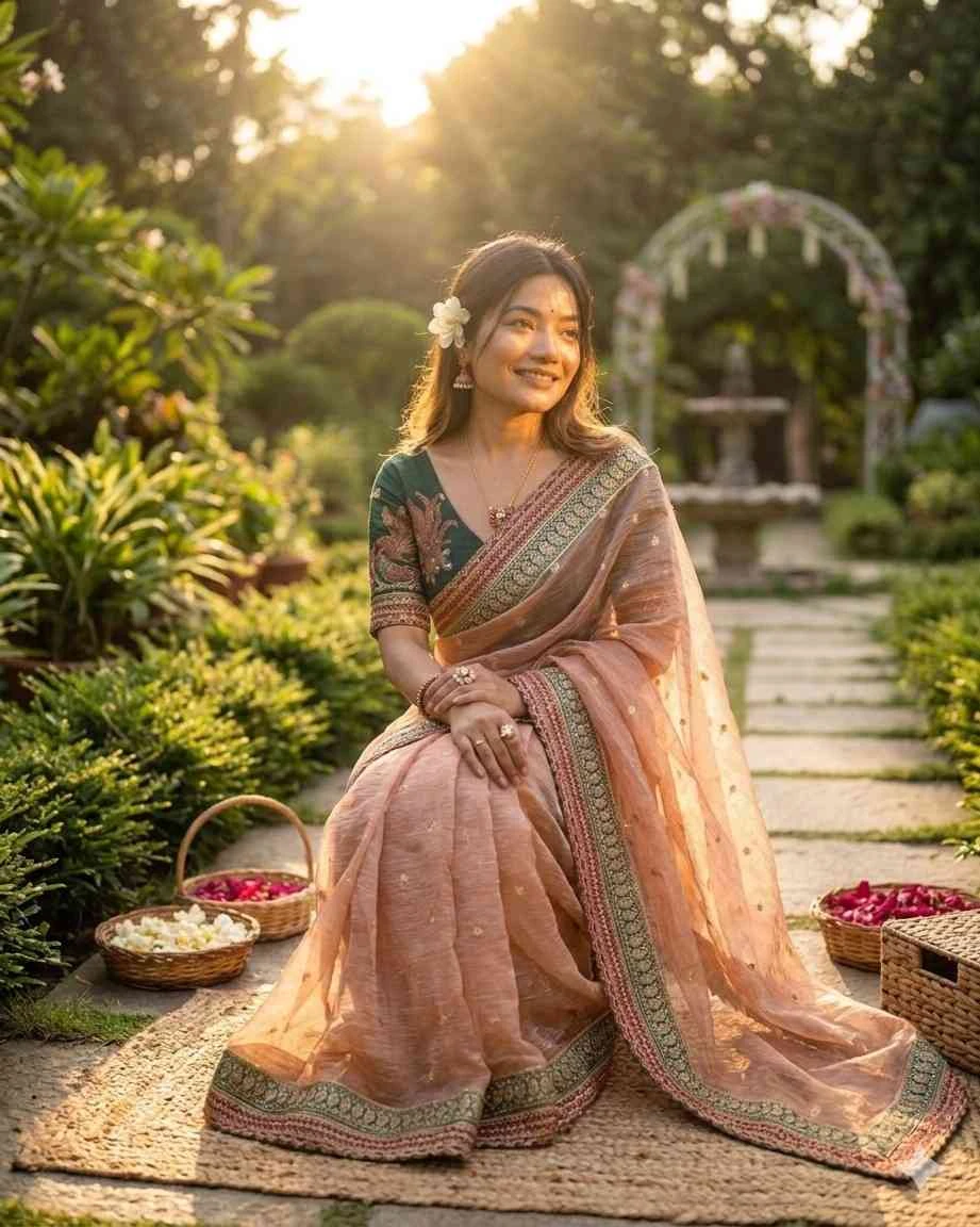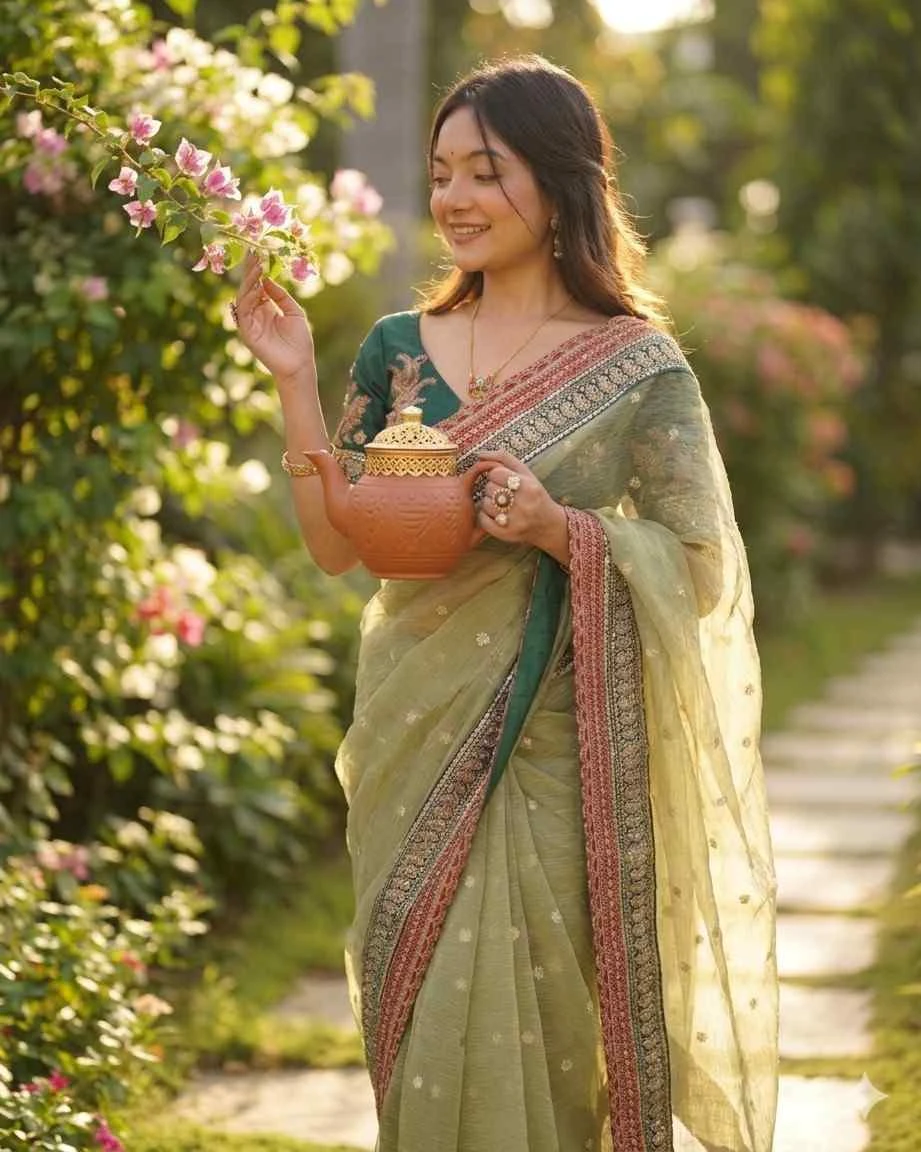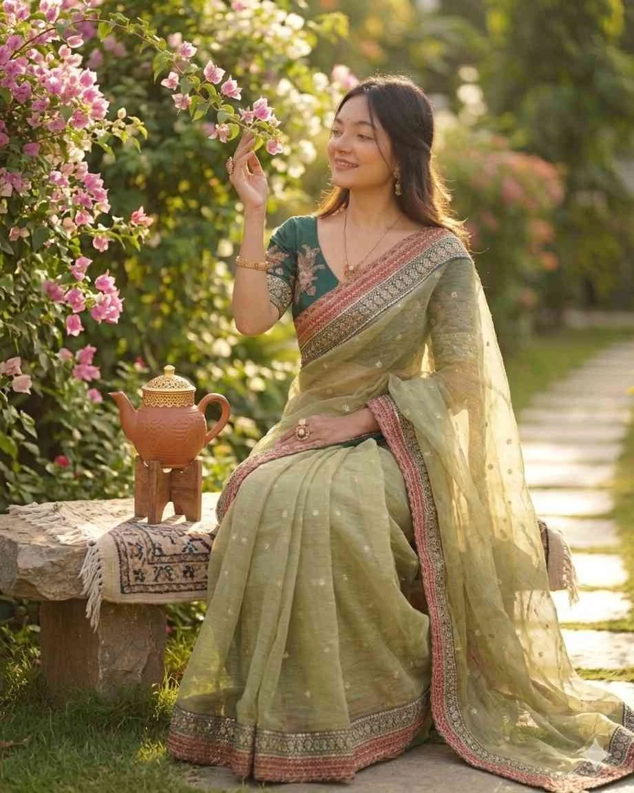 | Blouse Fabric | Banglori Silk with Sequence Work Lace Border |