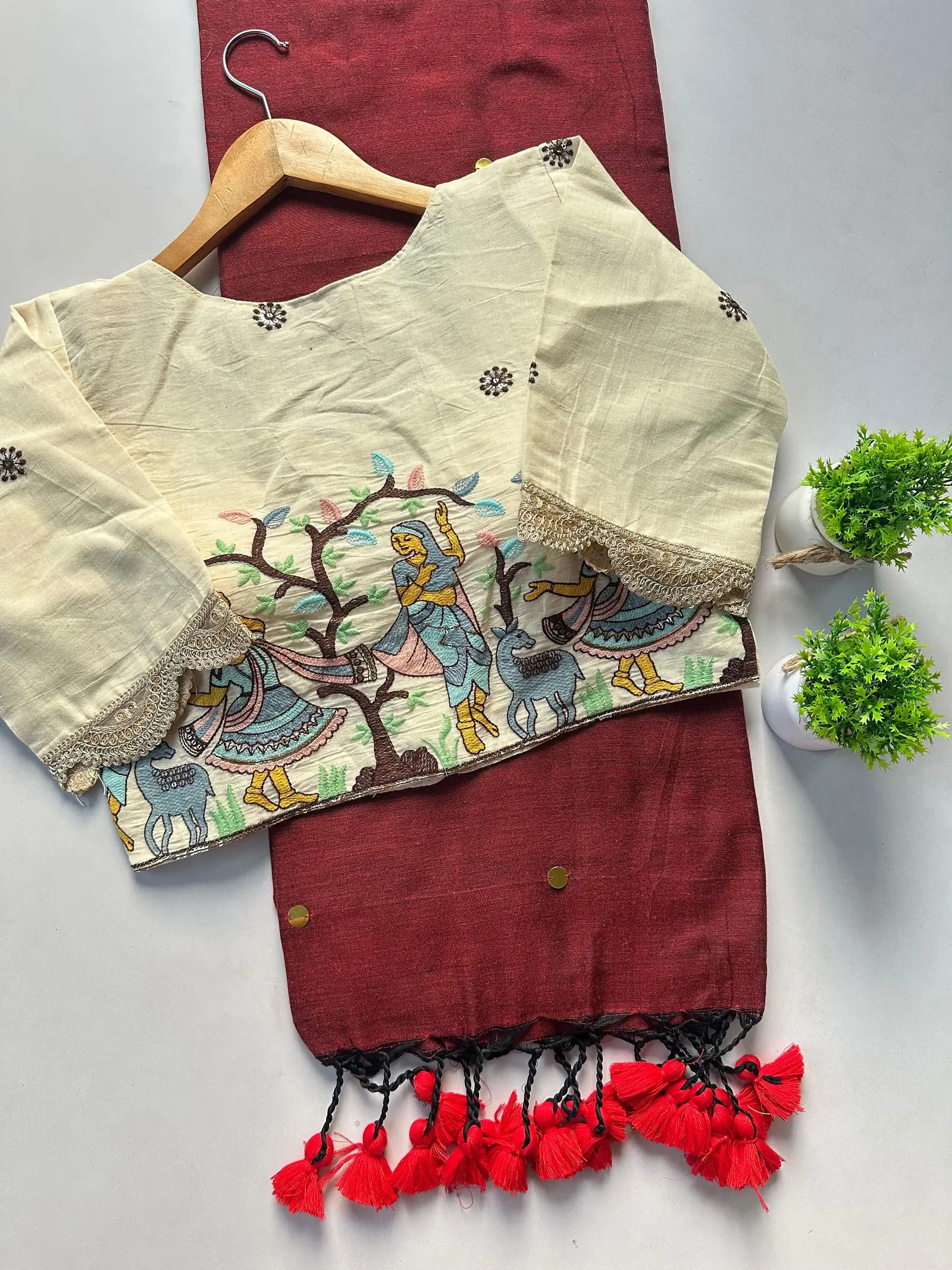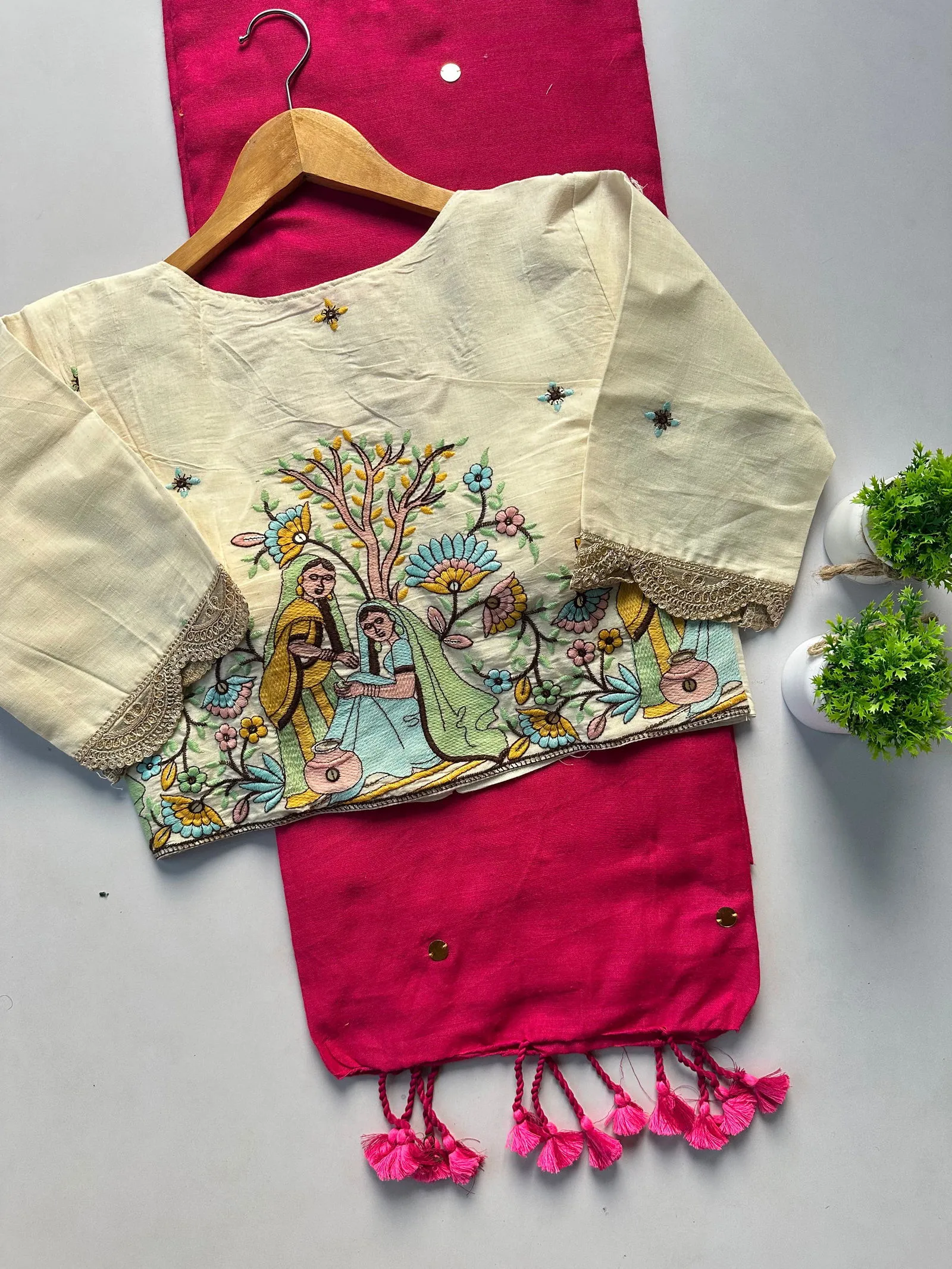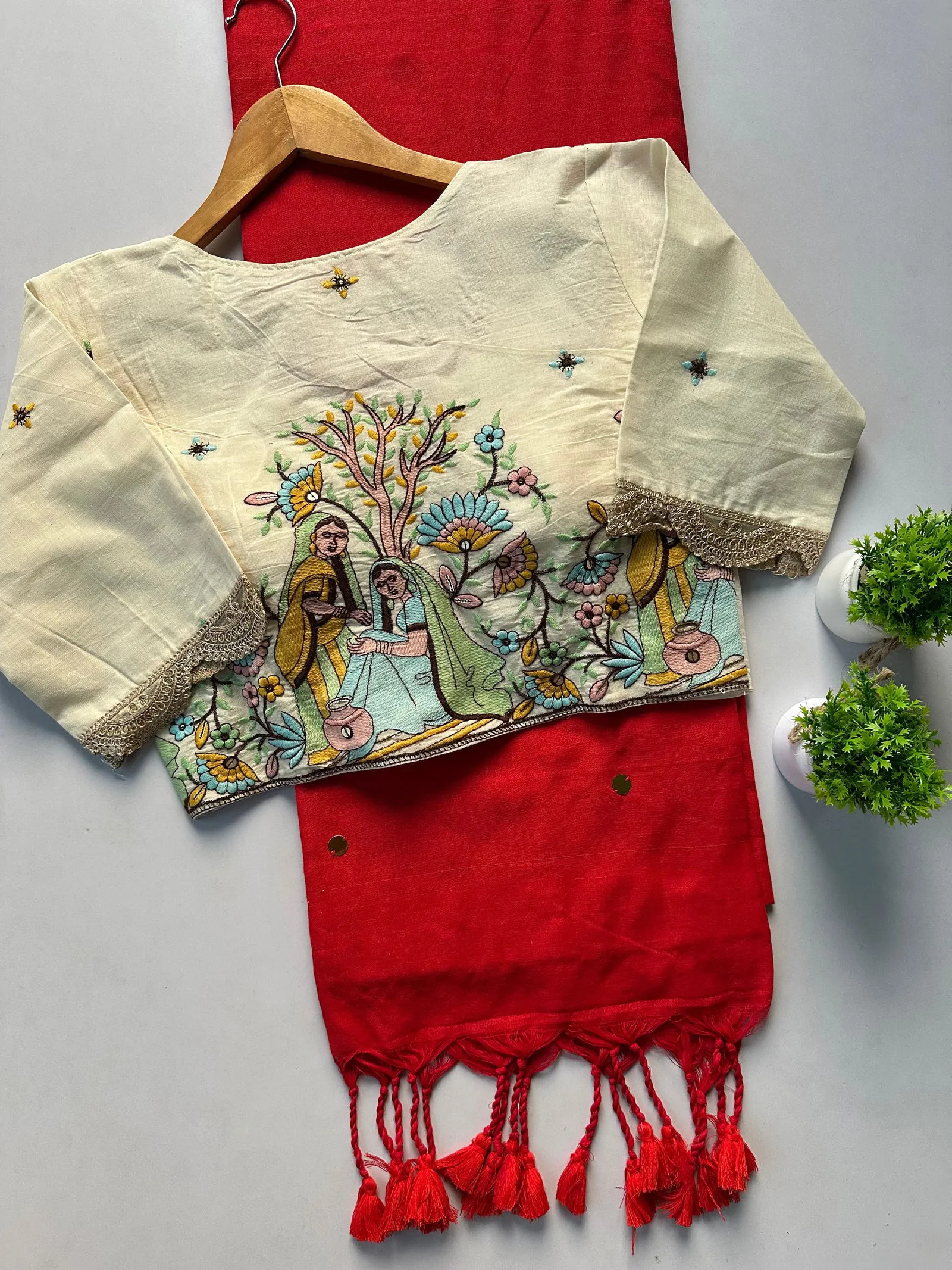| Blouse | Pure Khadi Blouse with Work ( Size 38 Alterable Upto 42) |