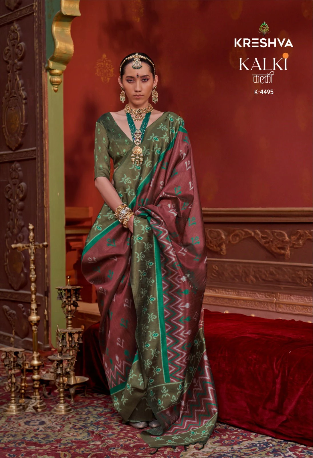 | Product Name | Kreshva Kalki Silk Ikkat Design with Hand Marmo Finish Saree Collection |