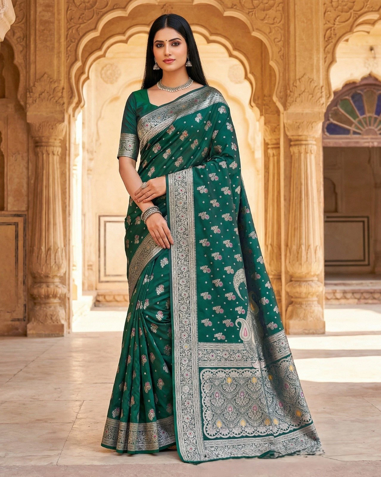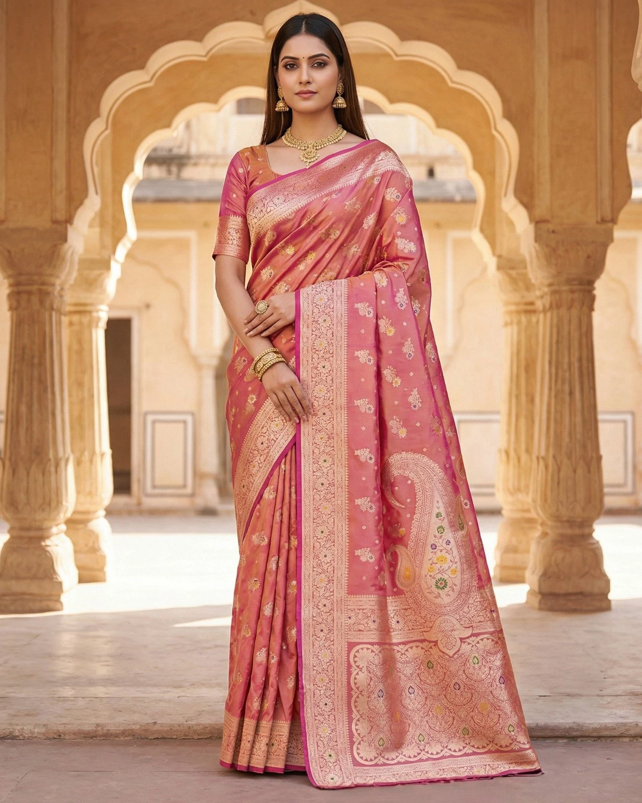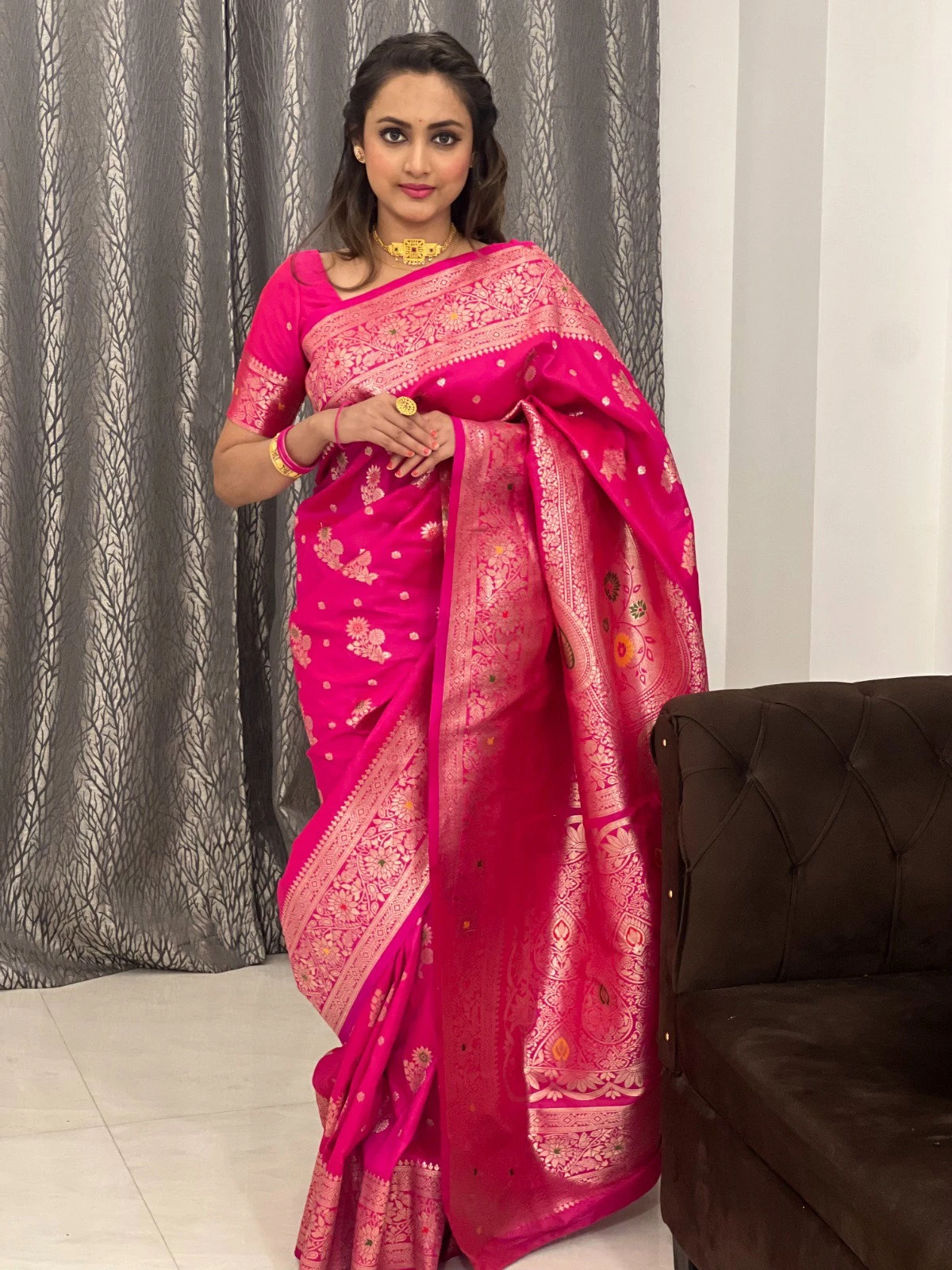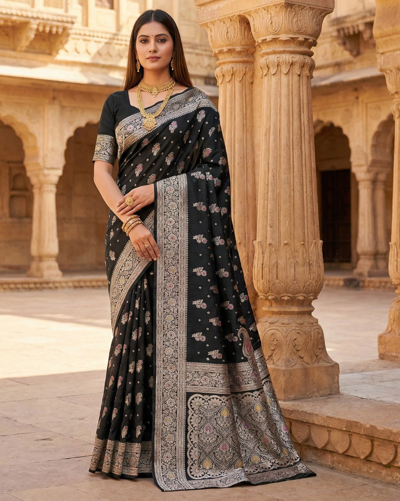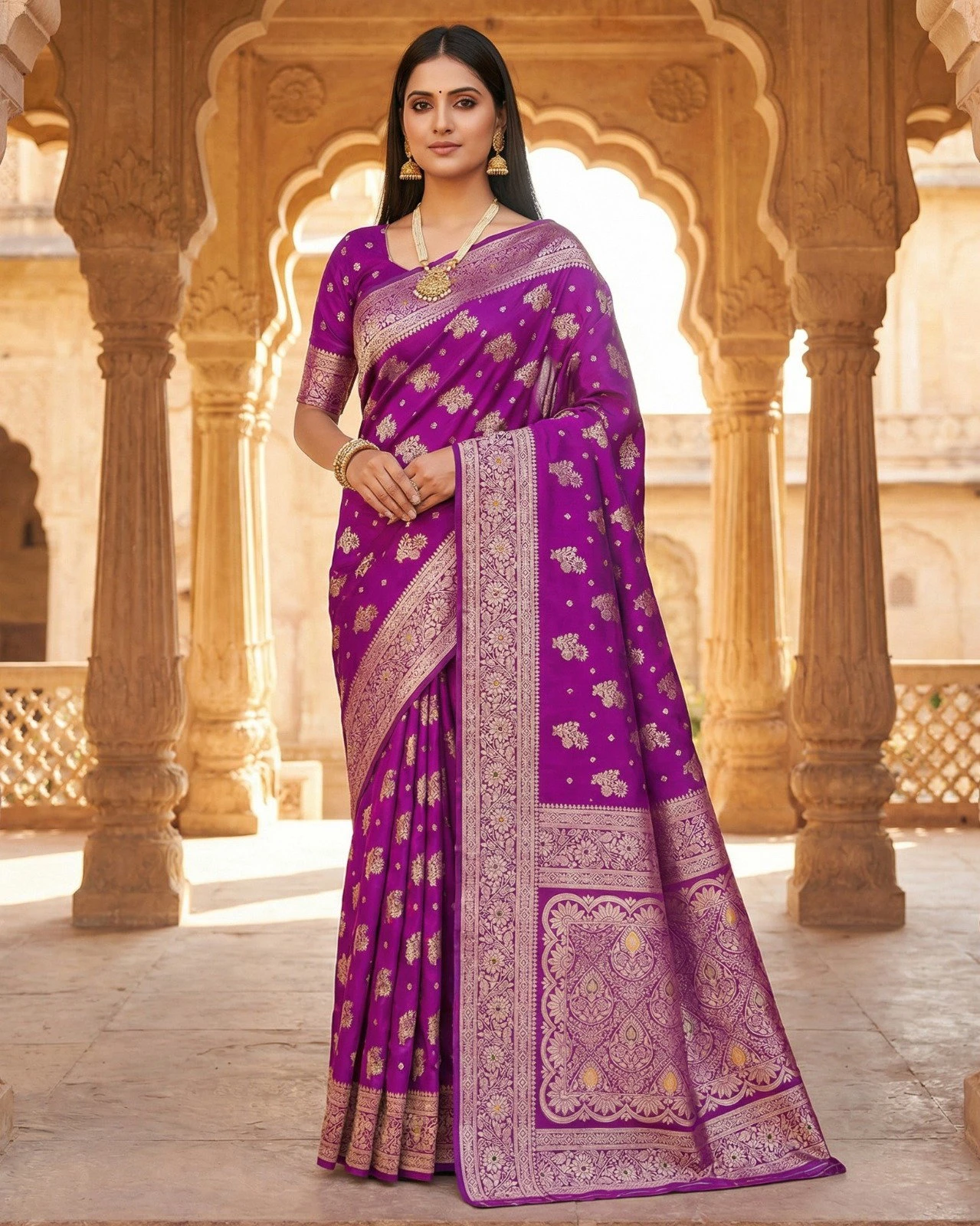 Saree Soft Banarasi Katan Silk with Gold Zari Weaving Design Motifs All Over the Saree and Zari Weaving Rich Pallu with Zari Weaving Contrast Border