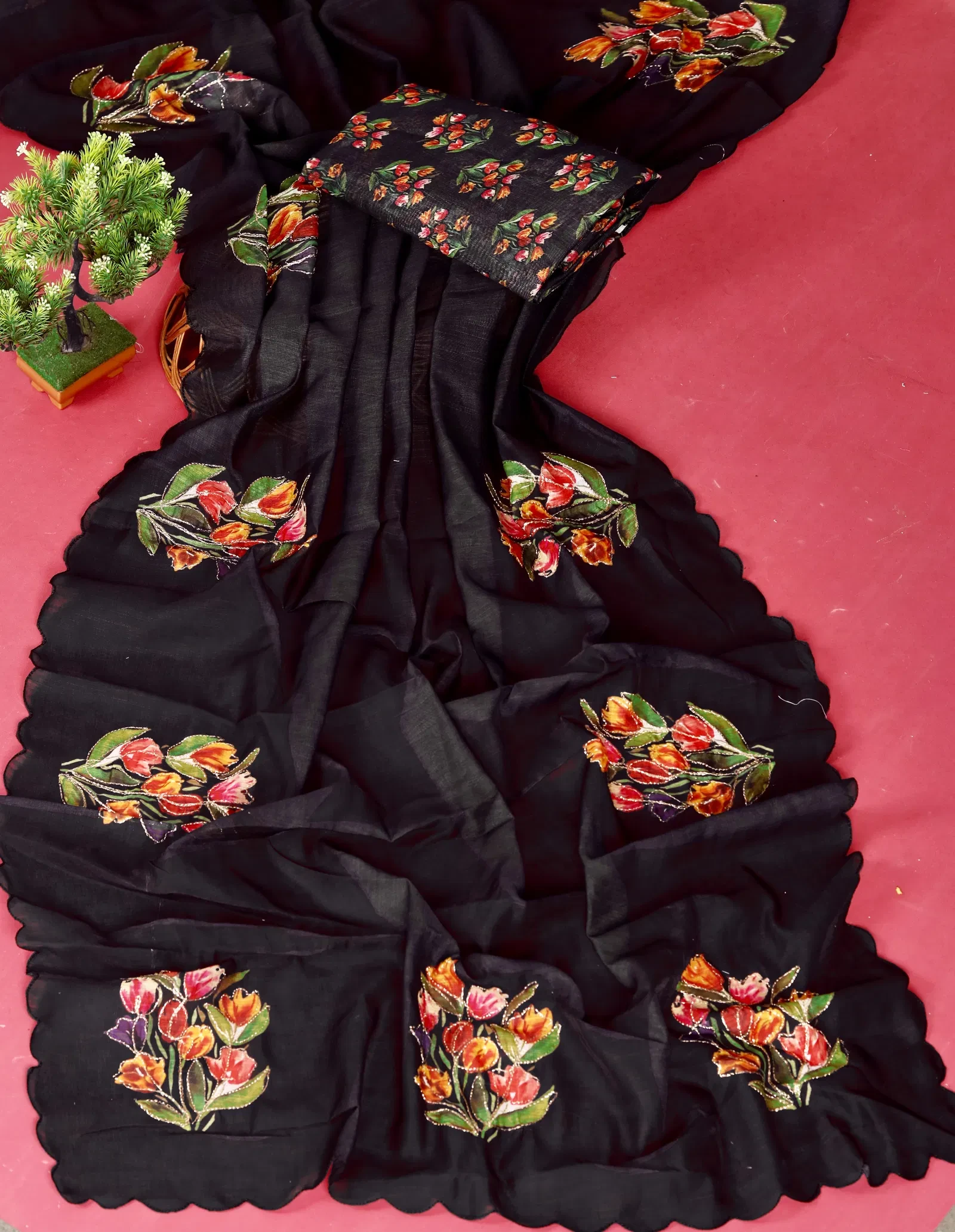 | Saree | Cotton Linen with Aari Work and Digital Printed |