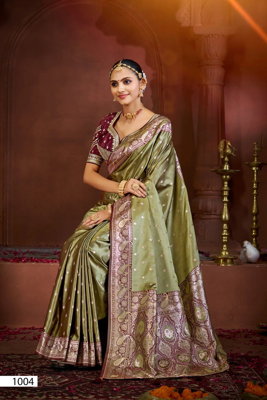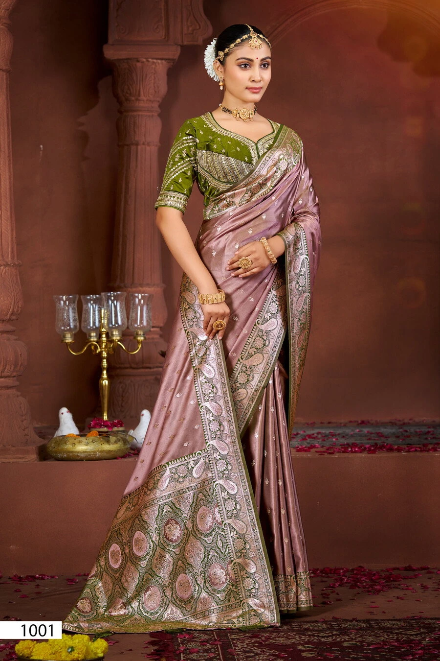 Fabric Pure Dusty Contrast Satin Silk Rich Pallu Saree