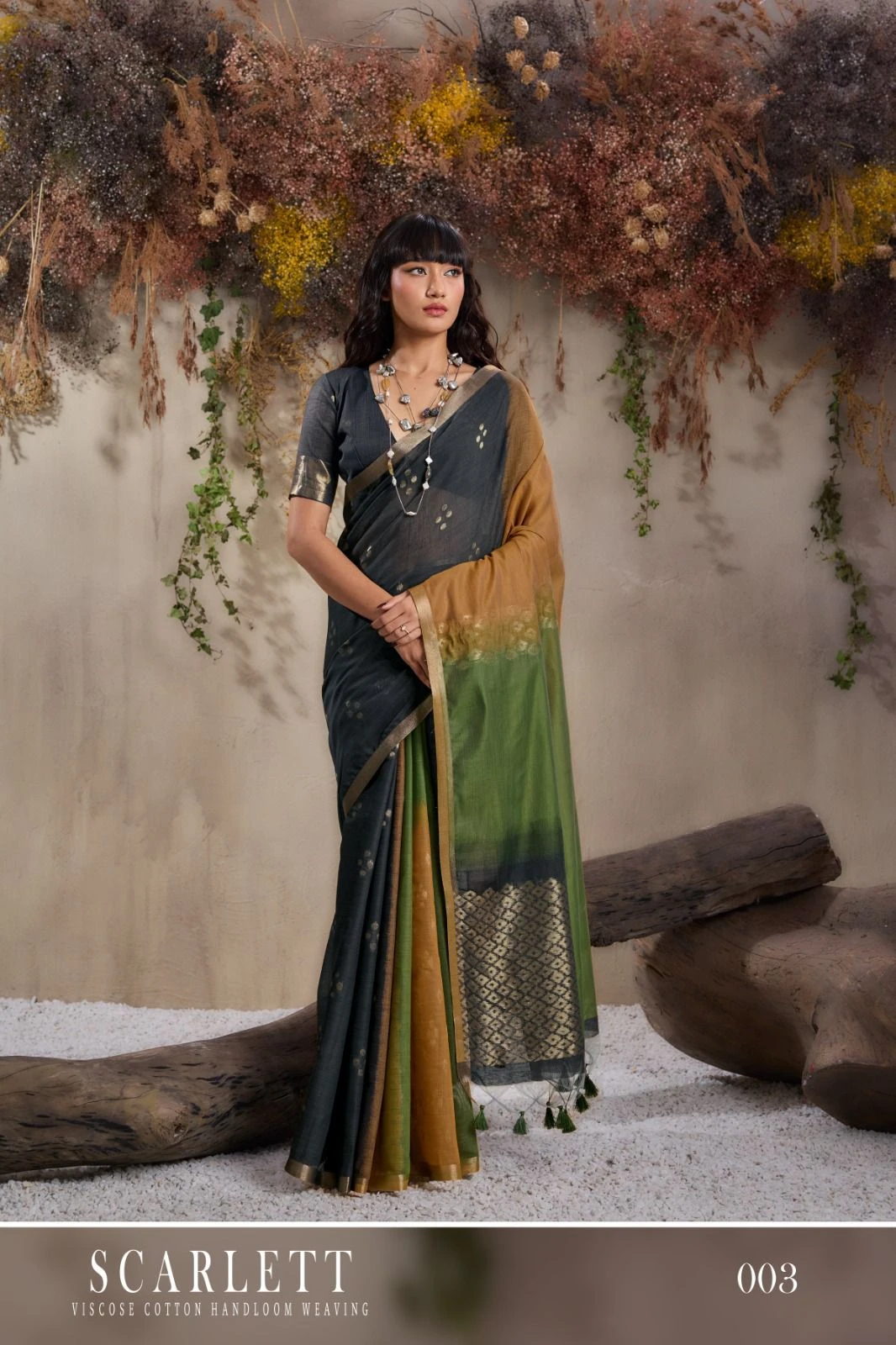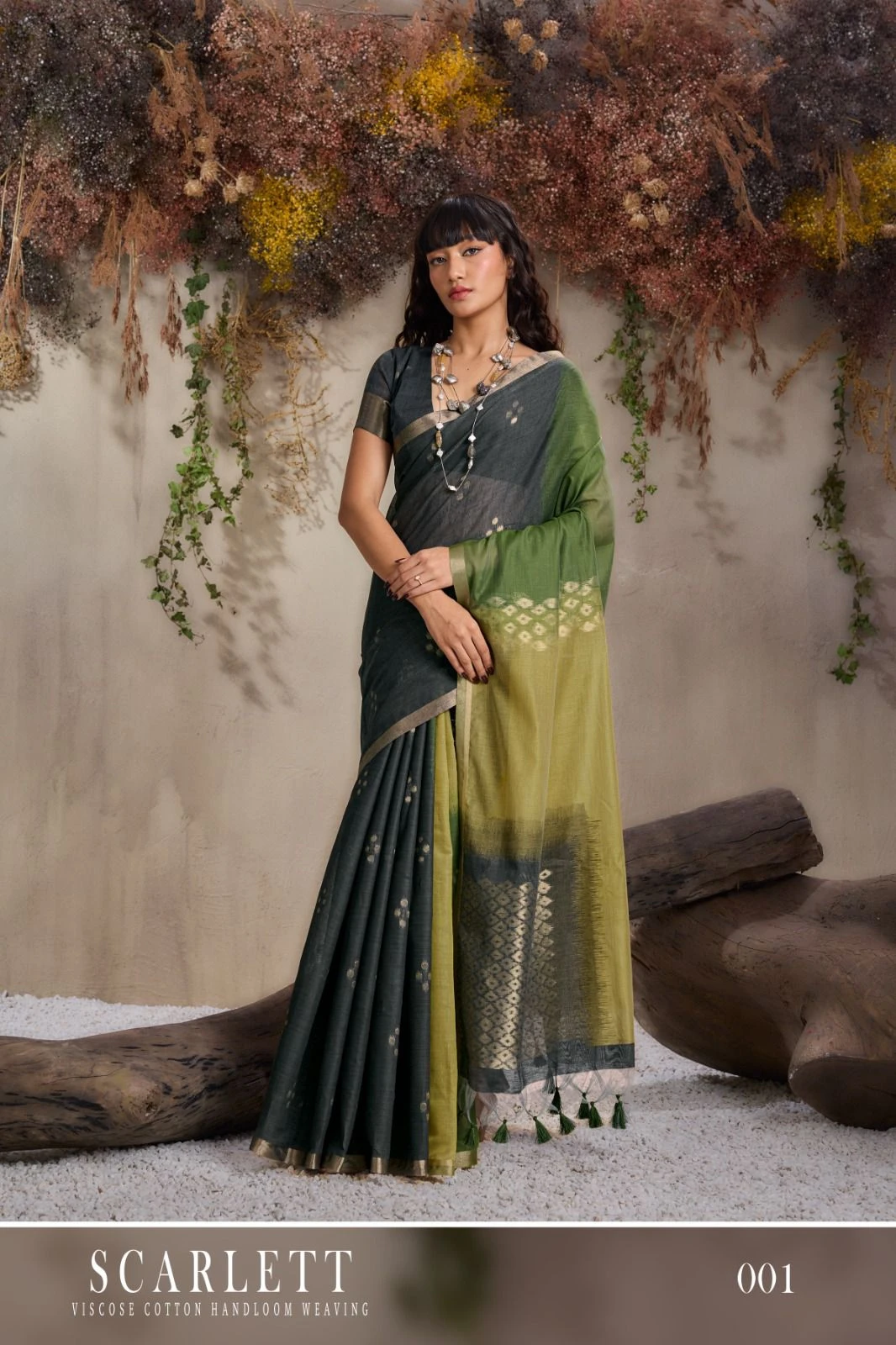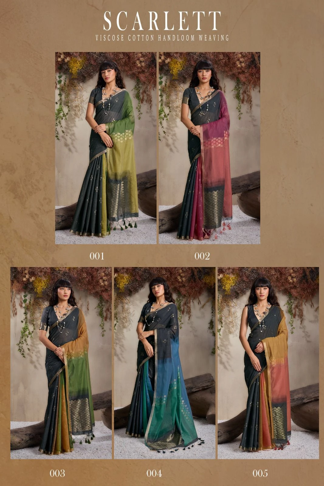 Scarlett 001 to 005 Viscose Cotton Handloom Weaving Worked Saree