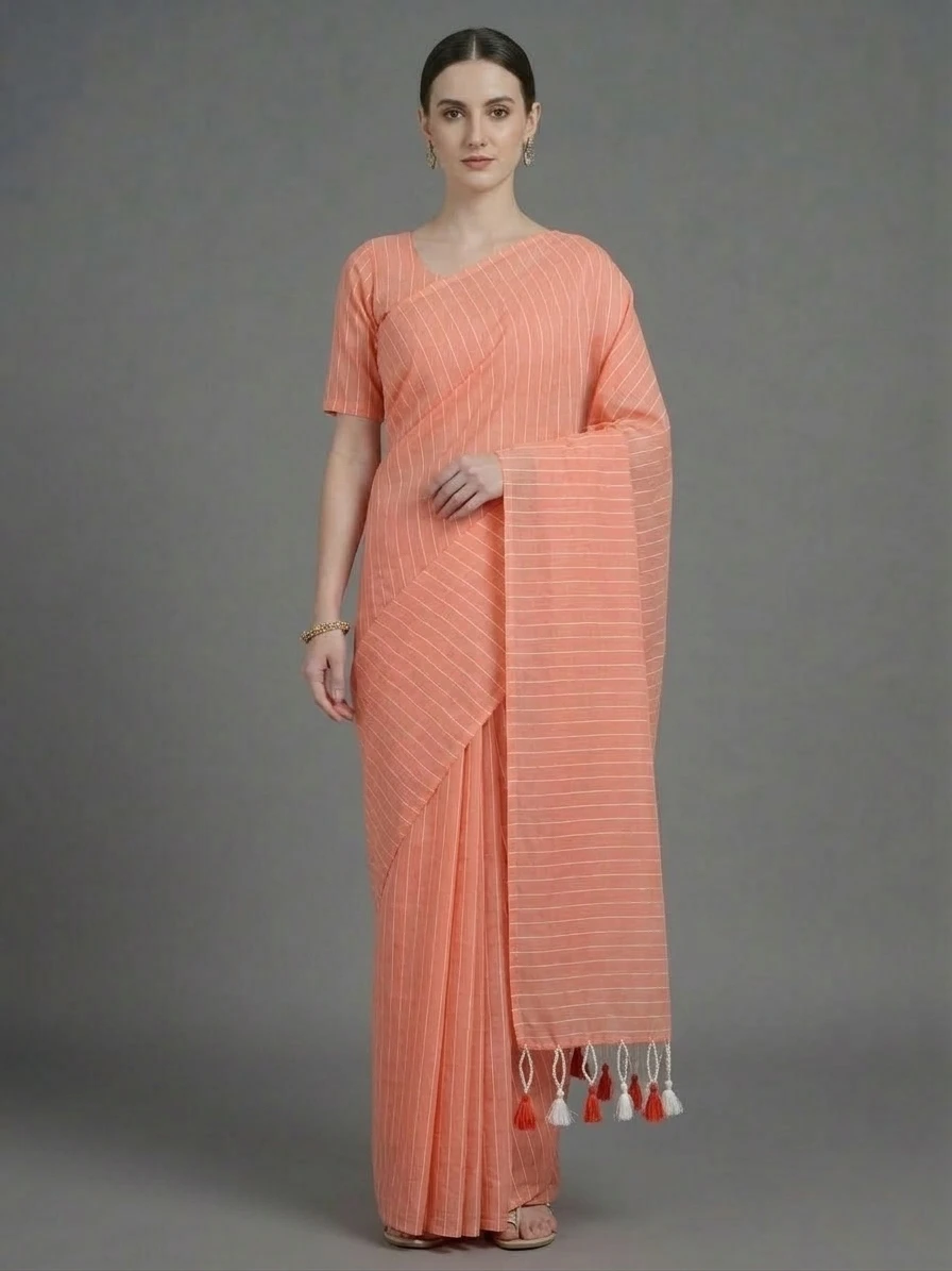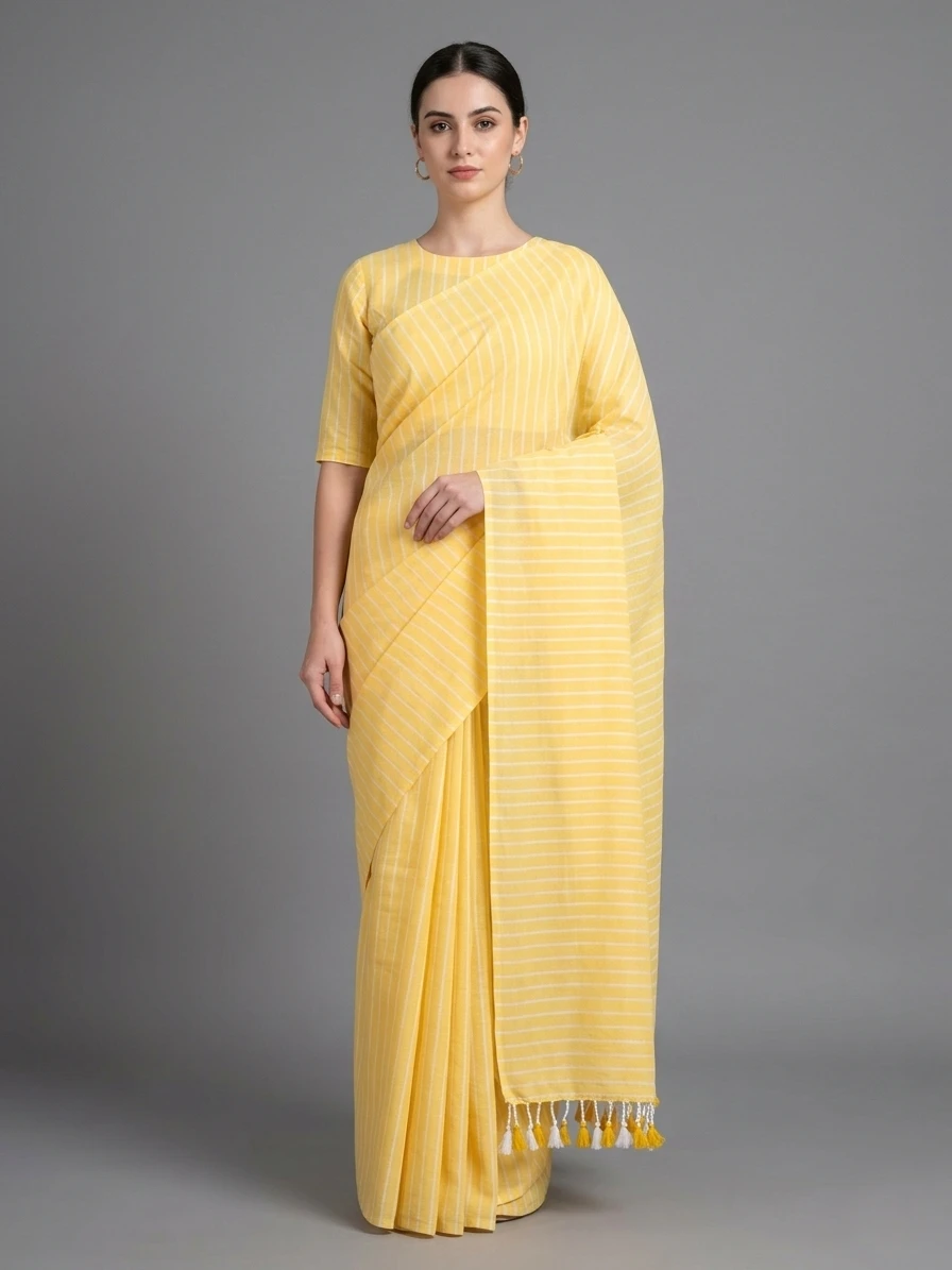 | Product Name | Sccf Stripes Khadi Cotton Printed Saree Collection |