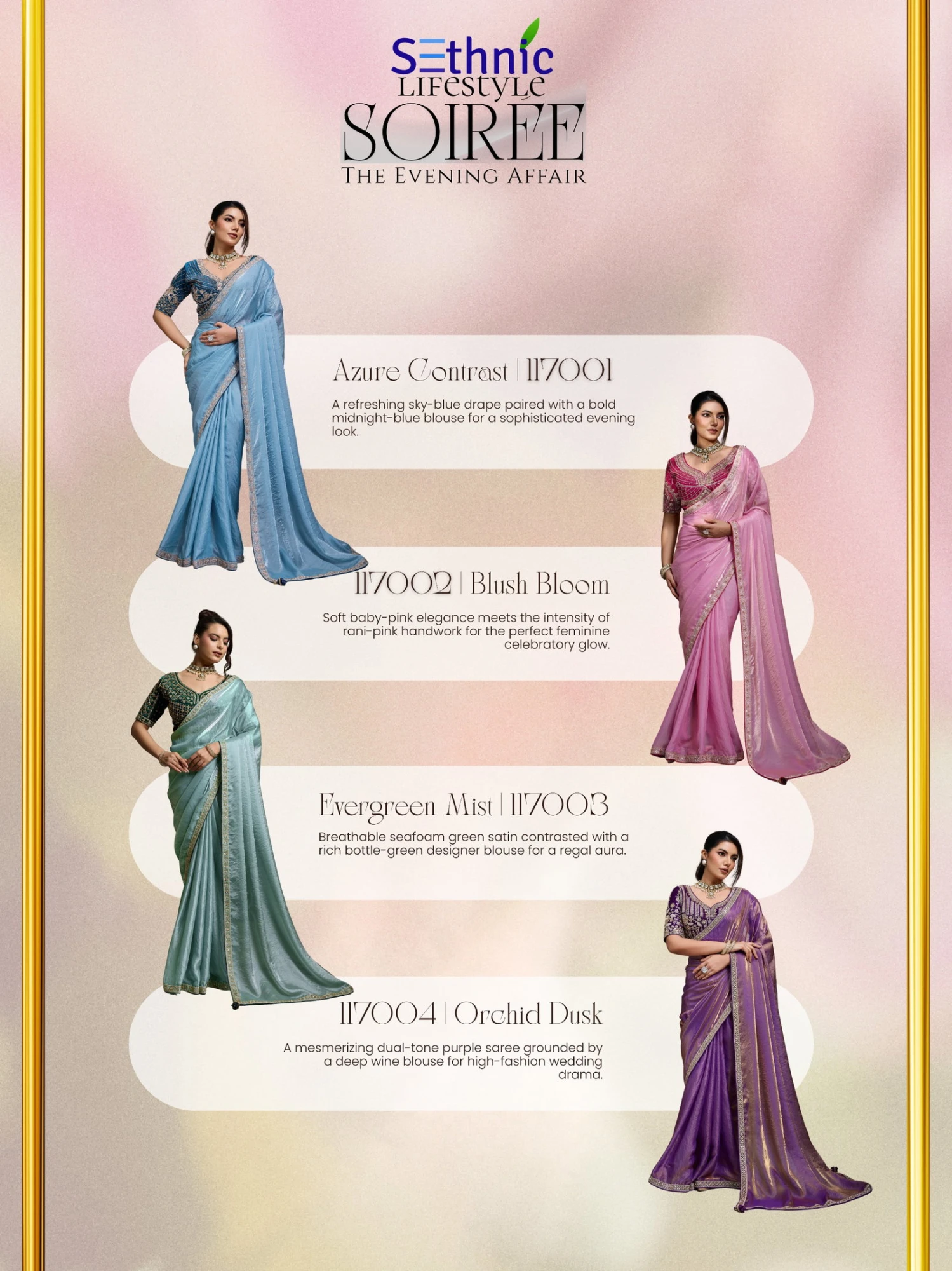 | Product Name | Sethnic Soiree the Evening Affair Velvet Satin Designer Saree Collection |