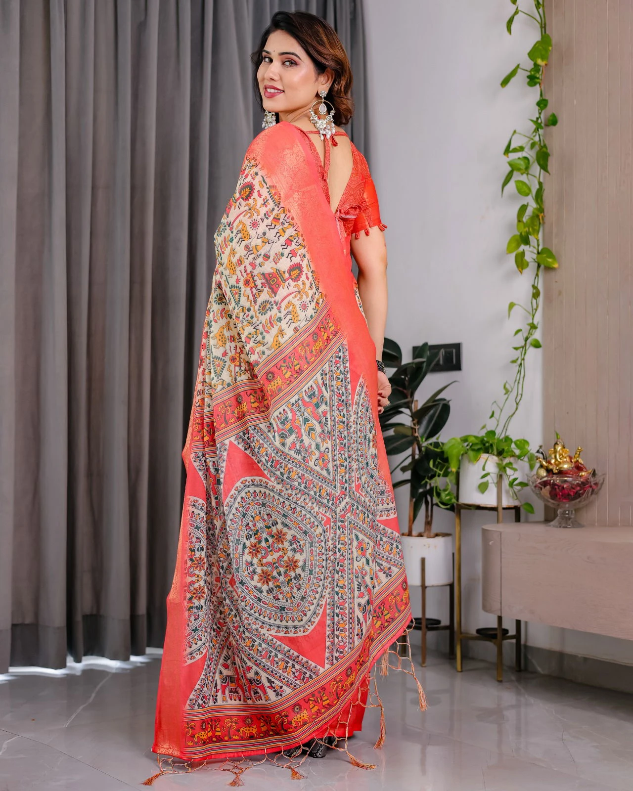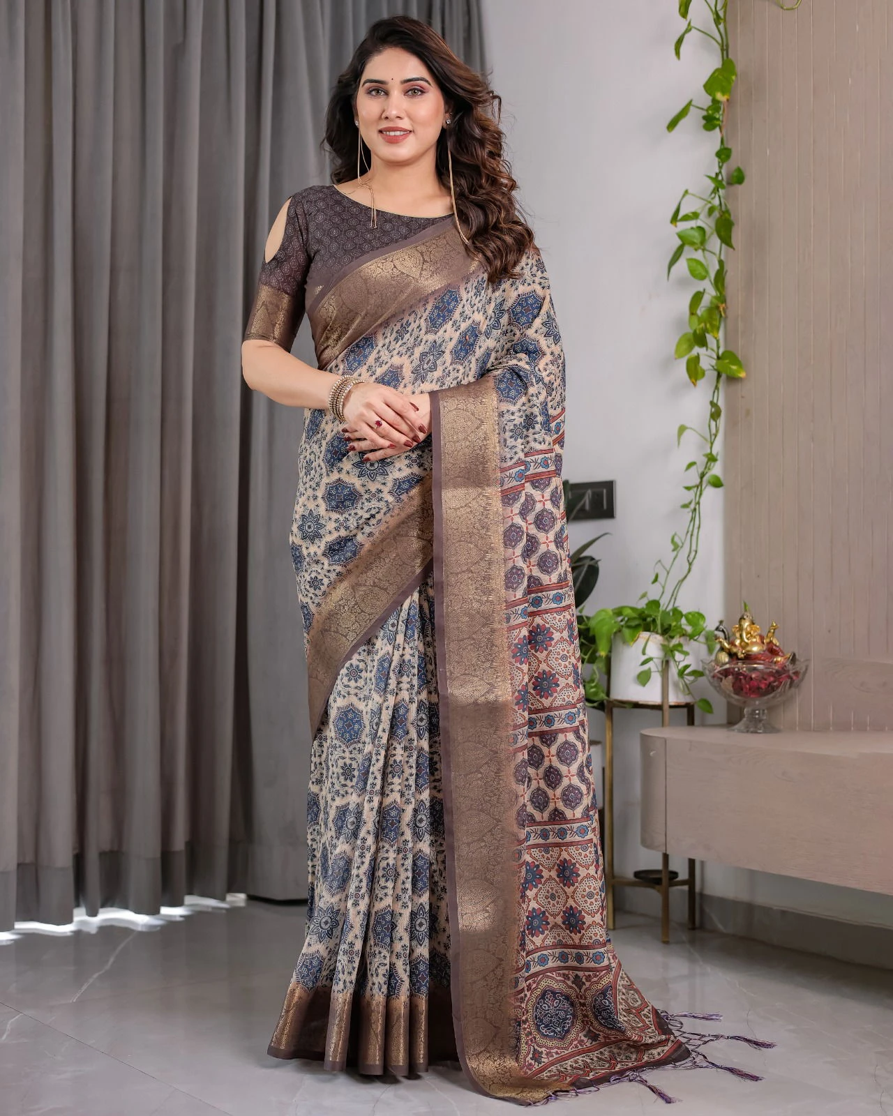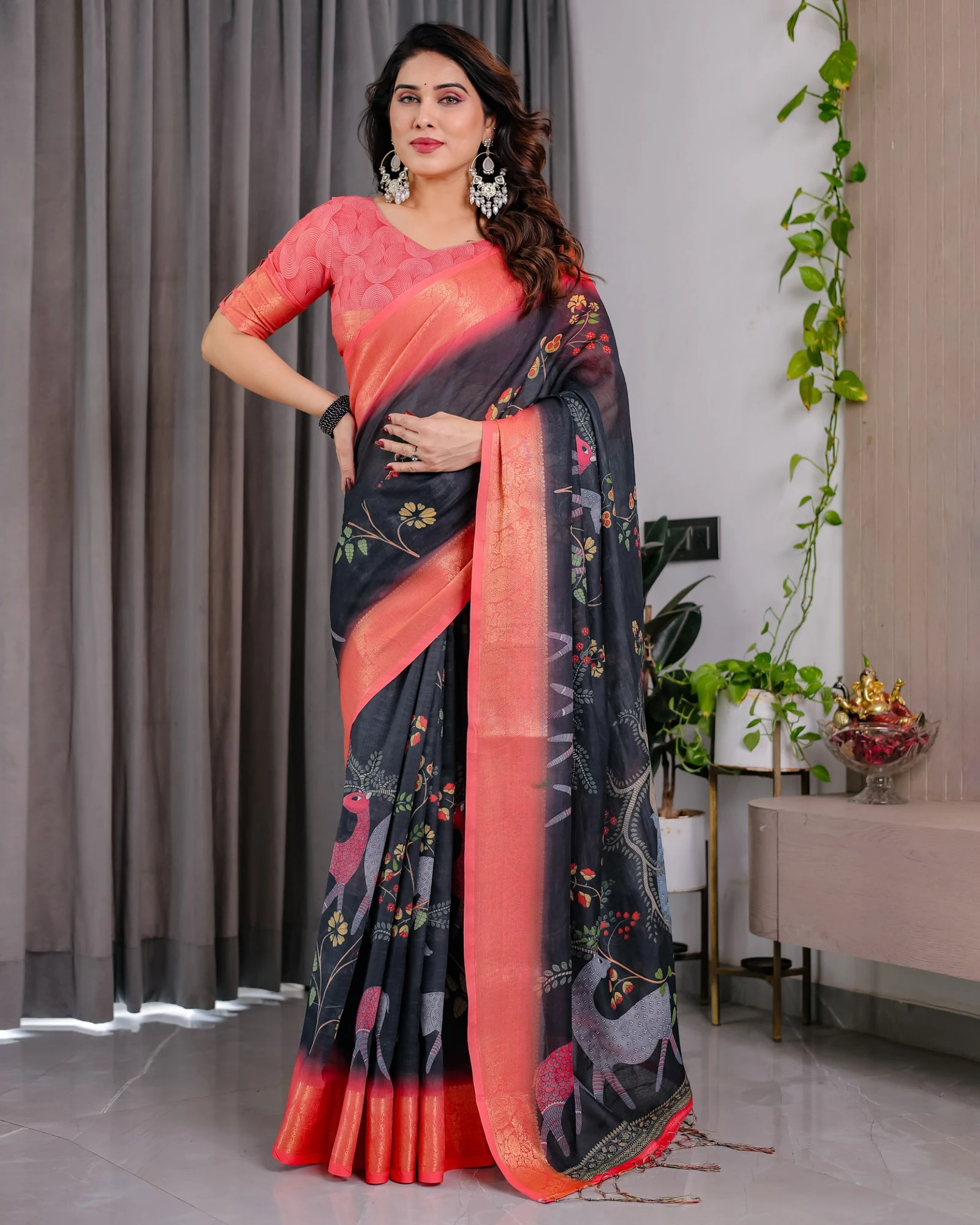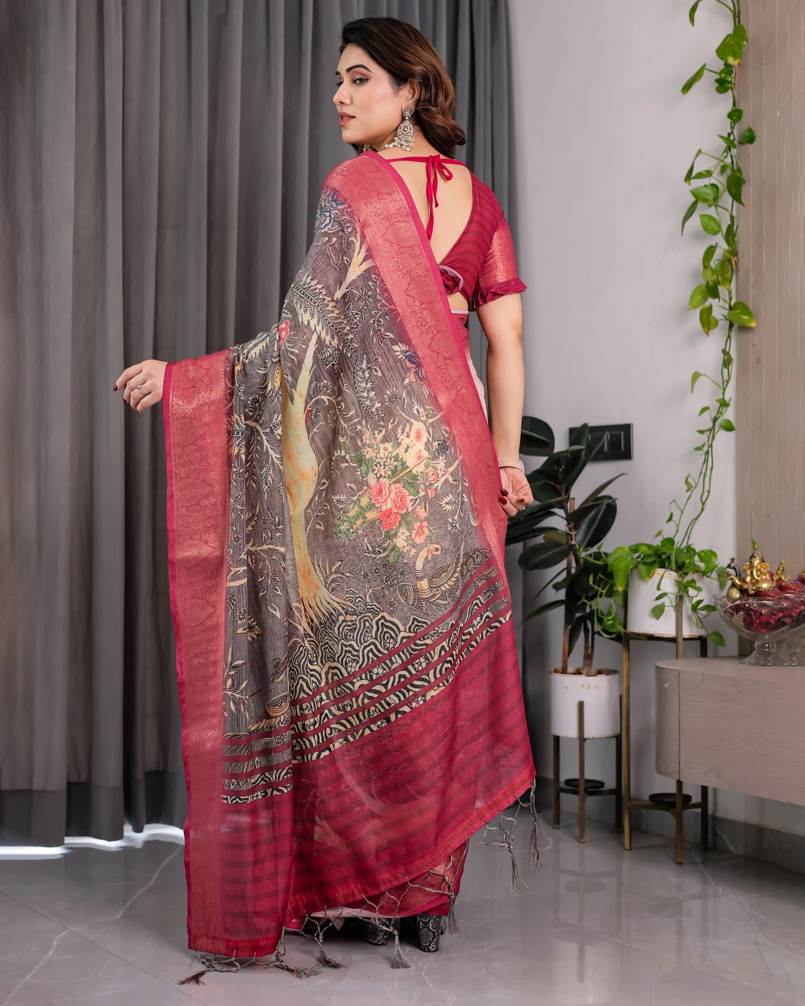 | Saree | Pure Handloom Linen with Digital Floral Print |