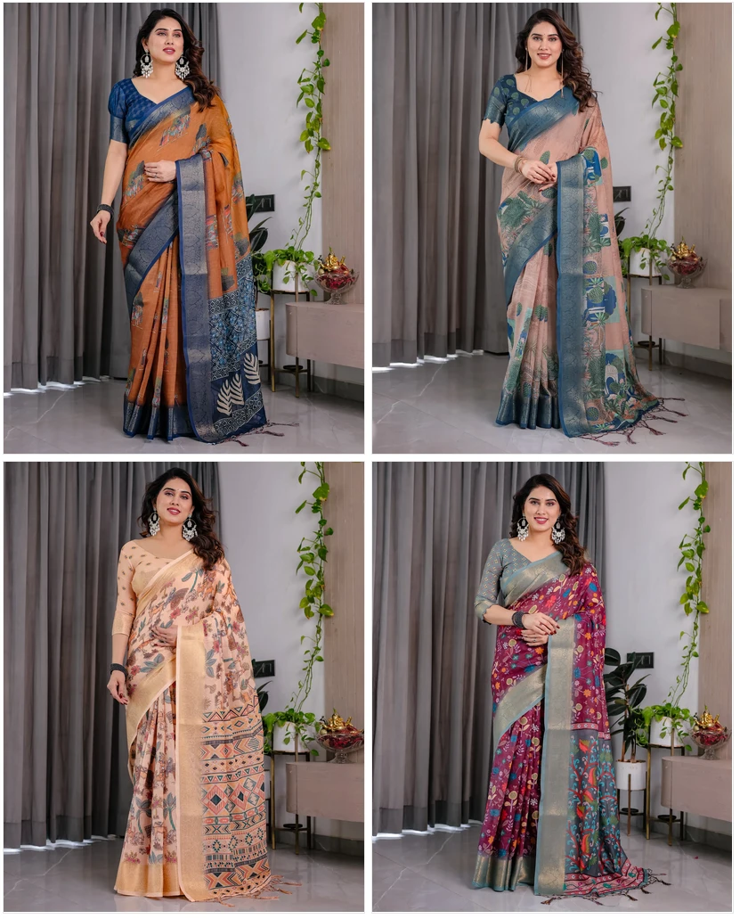 Product Name Shc Handloom Vol 1 Linen Floral Printed Saree Collection