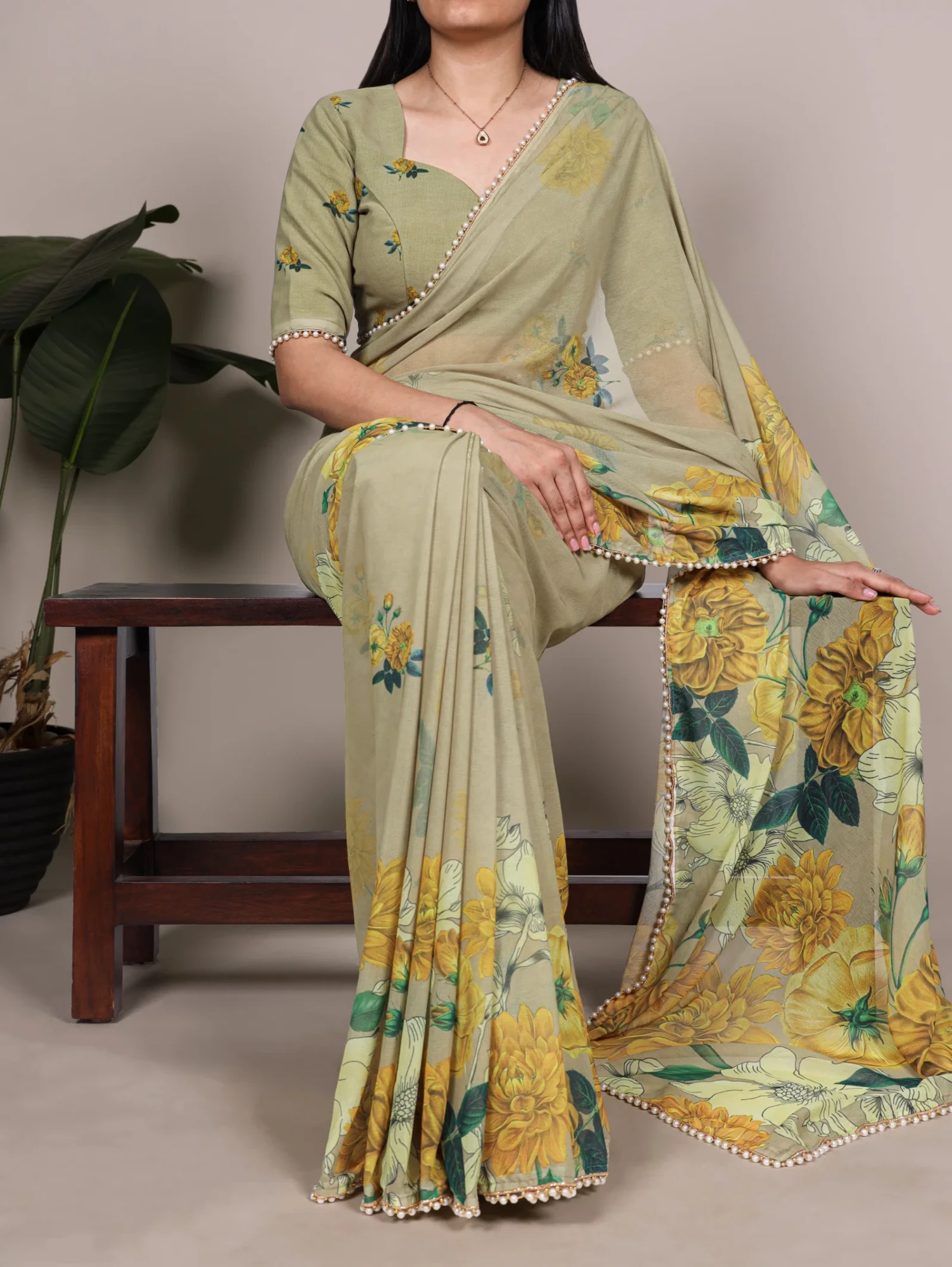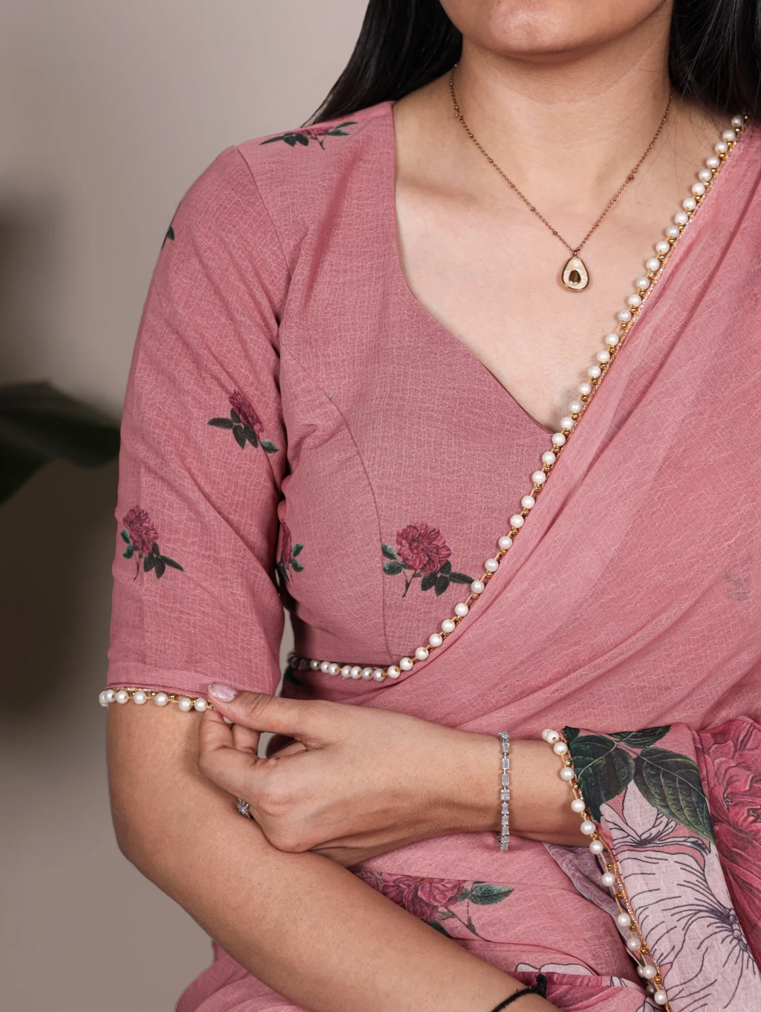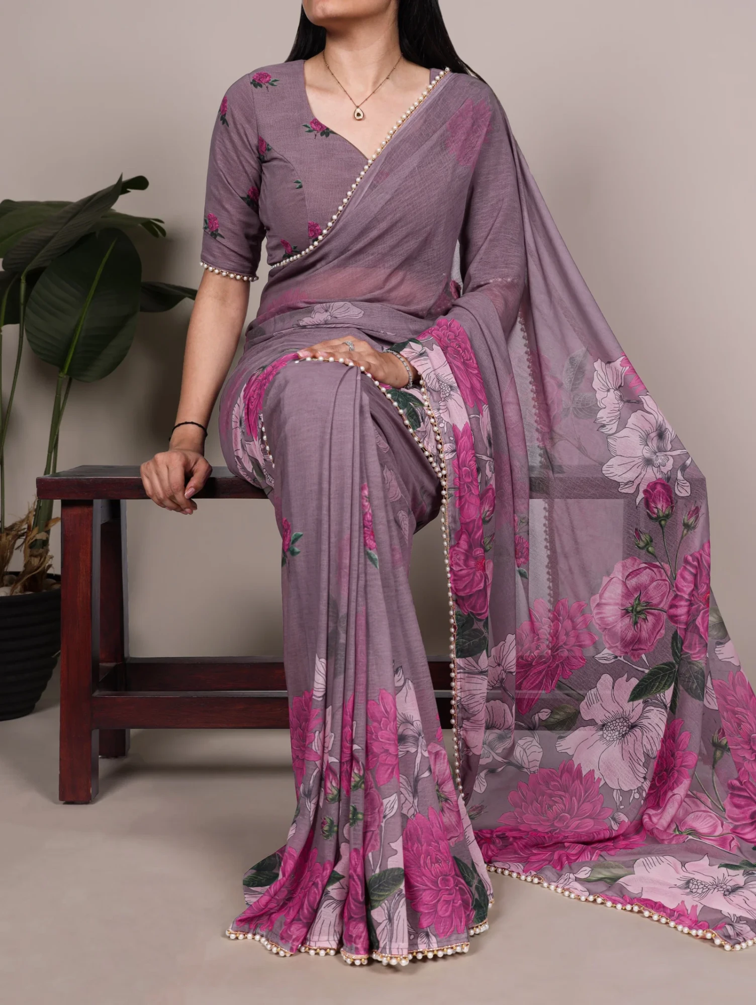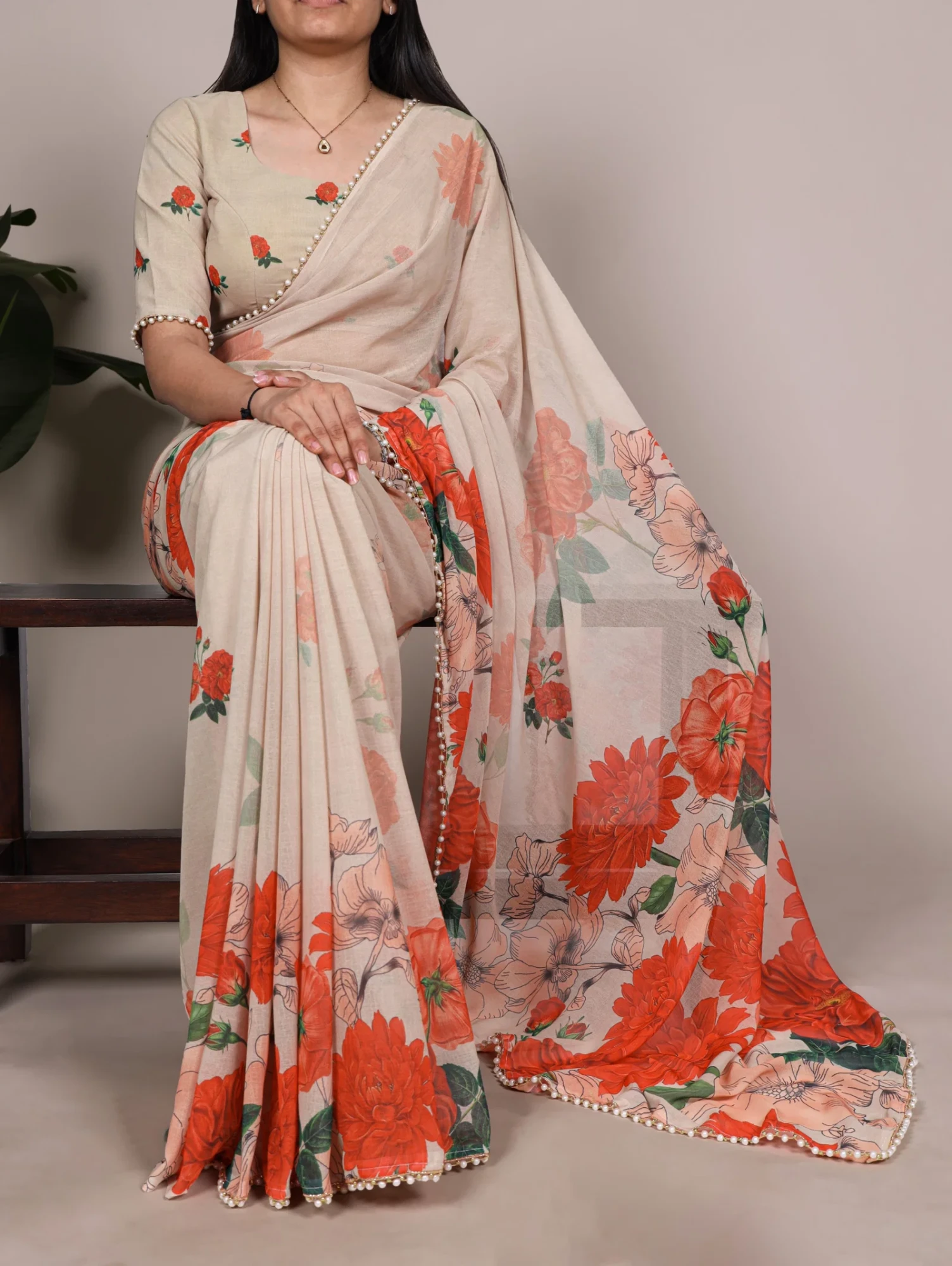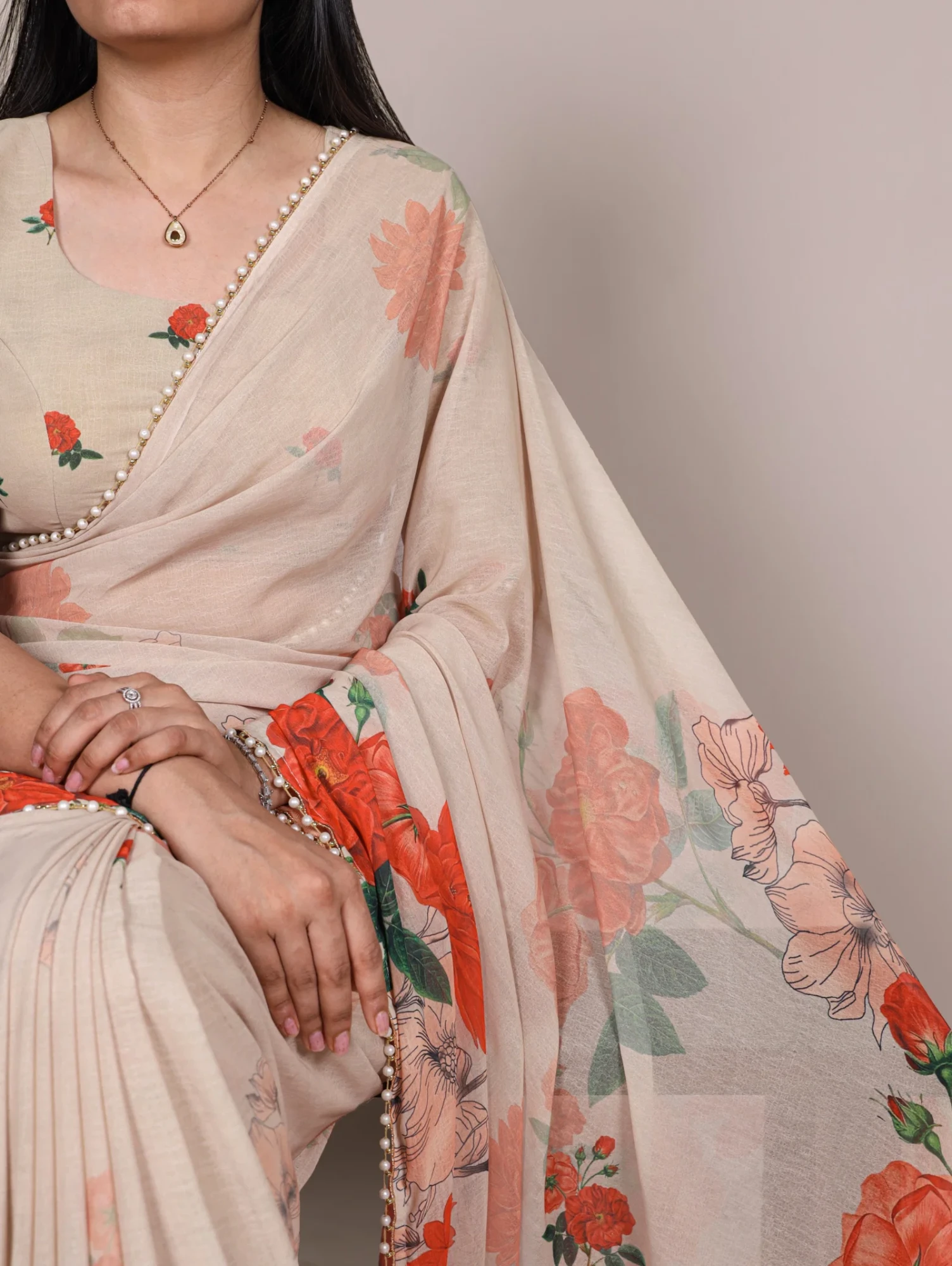 | Saree/blouse | Weightless Marbal and Floral Printed with Pearl Lace Border |