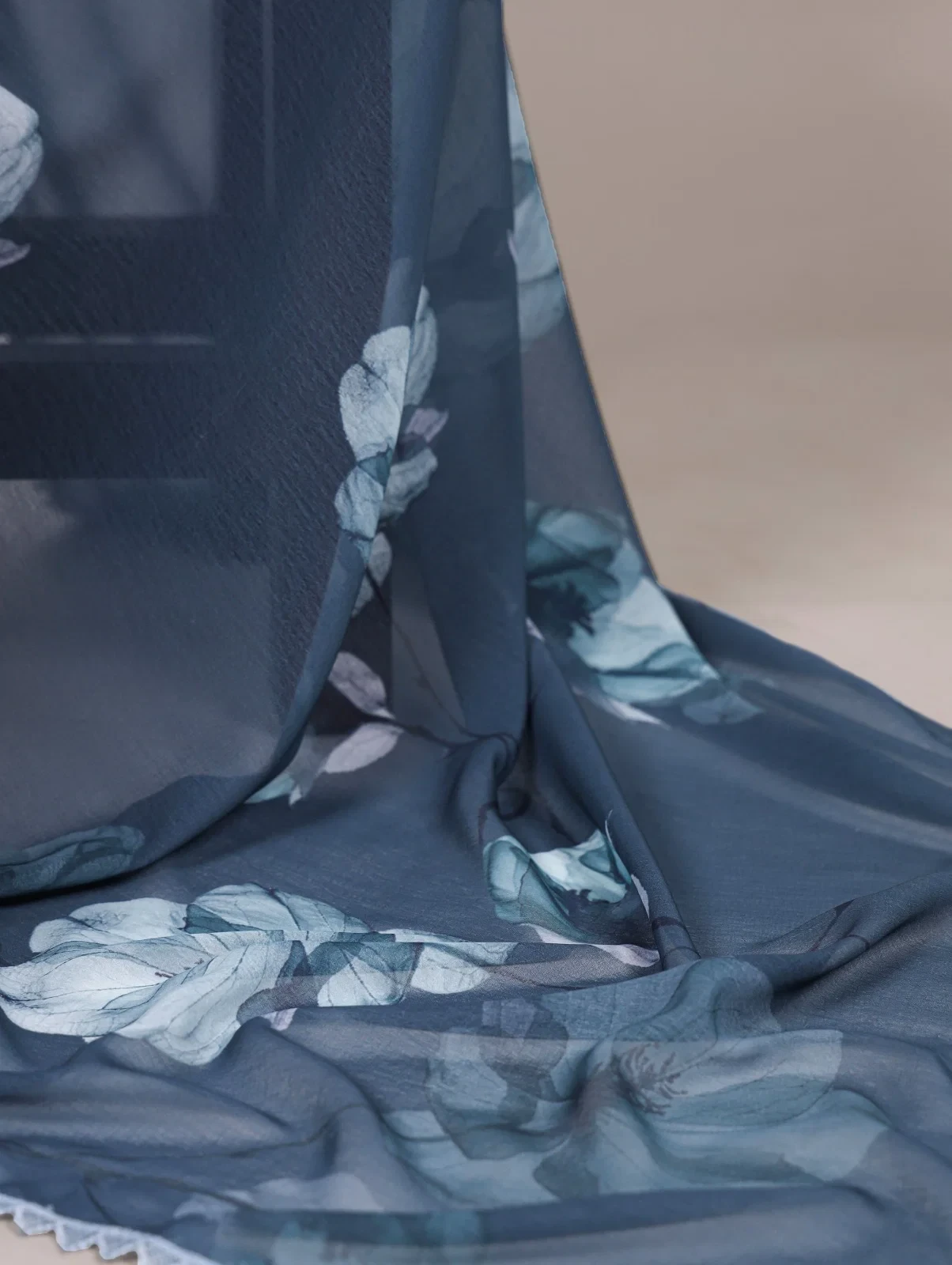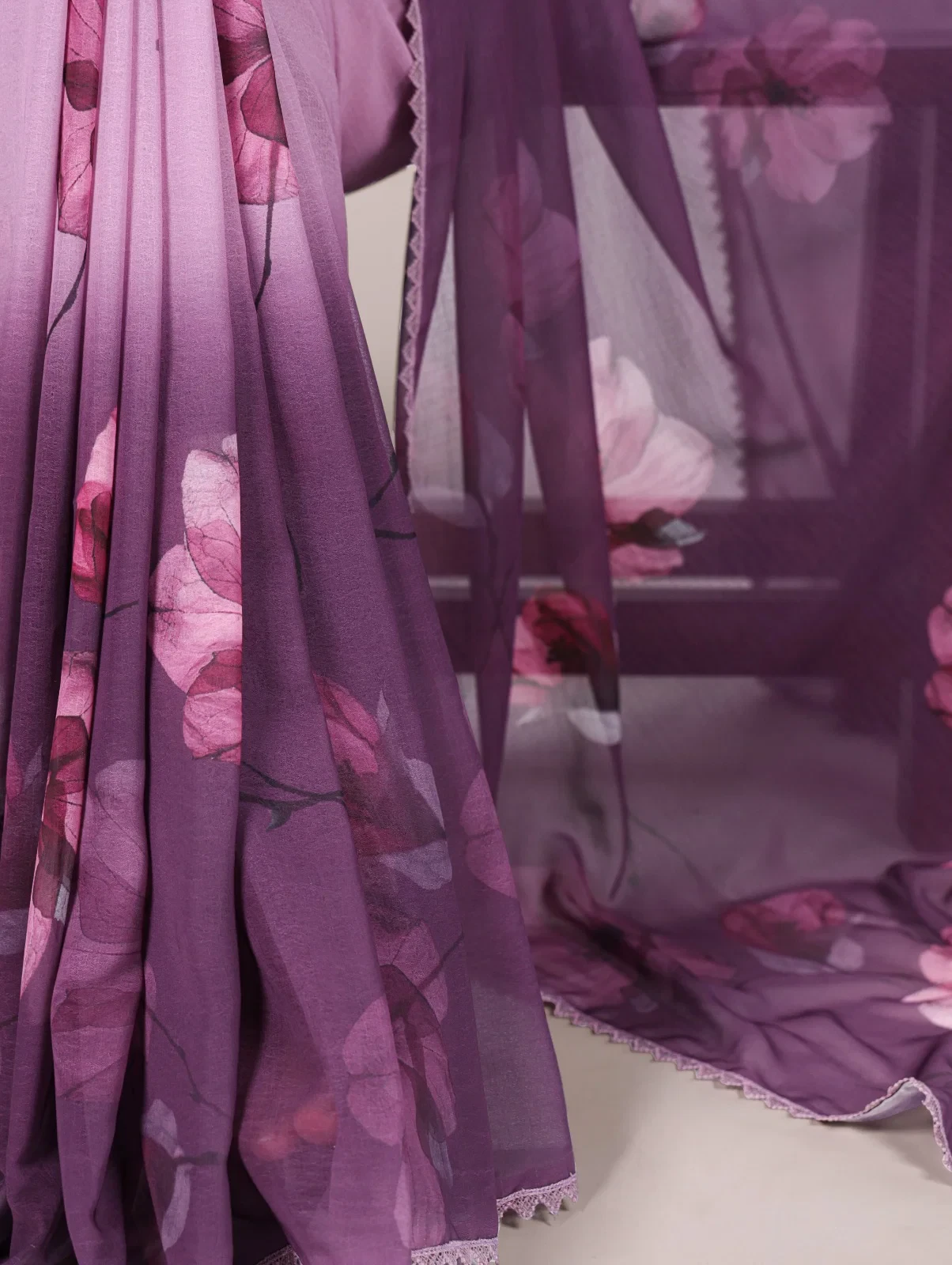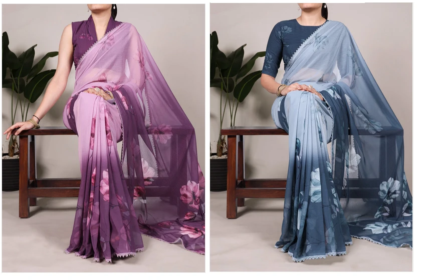 Saree/blouse Weightless Marbal Fabric with Floral Print and Lace Border