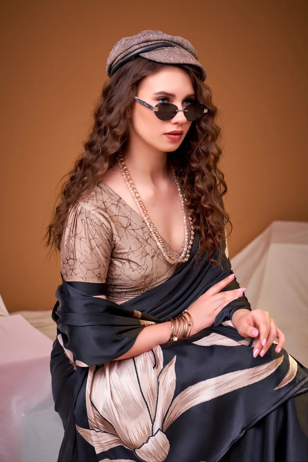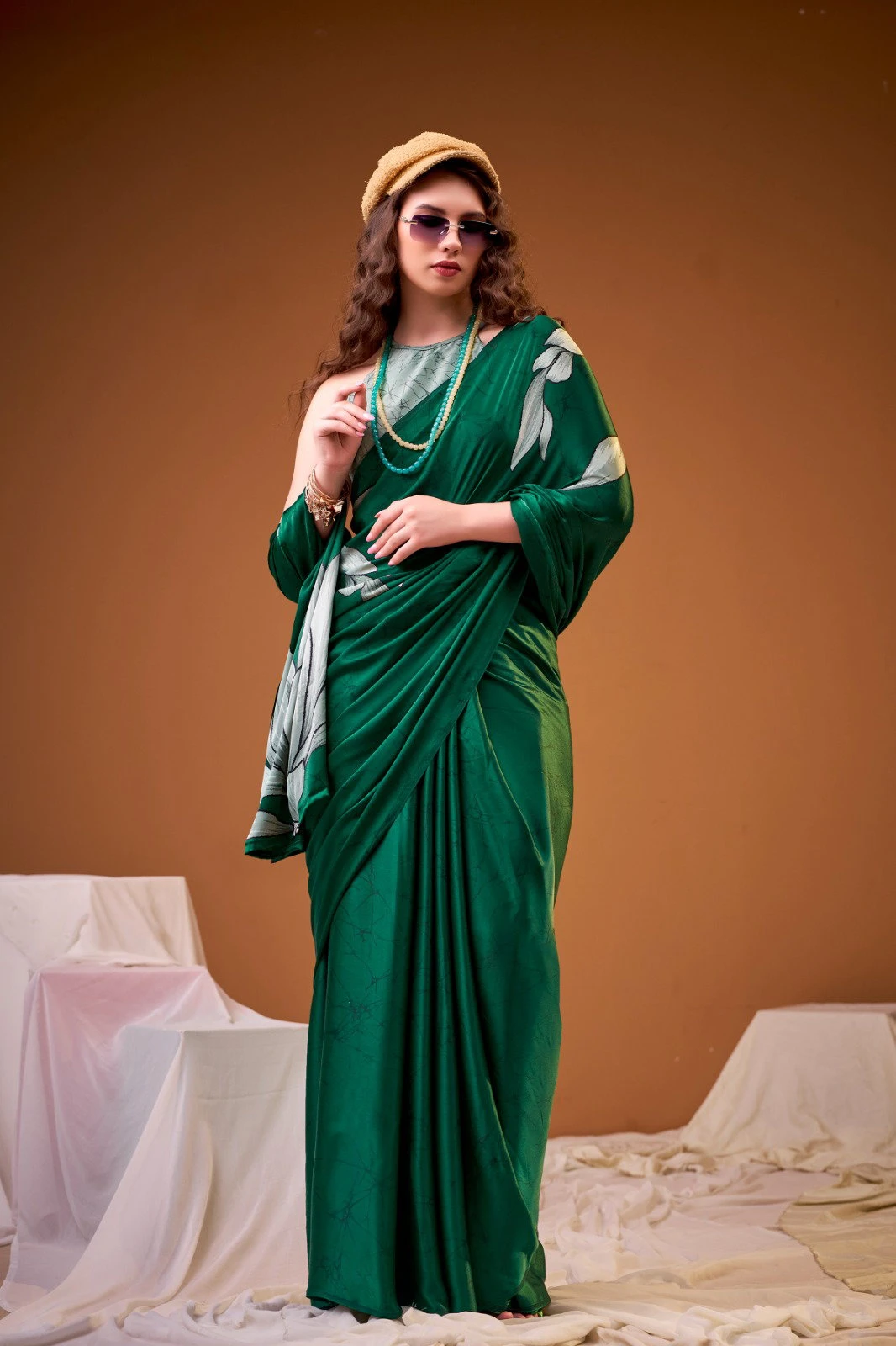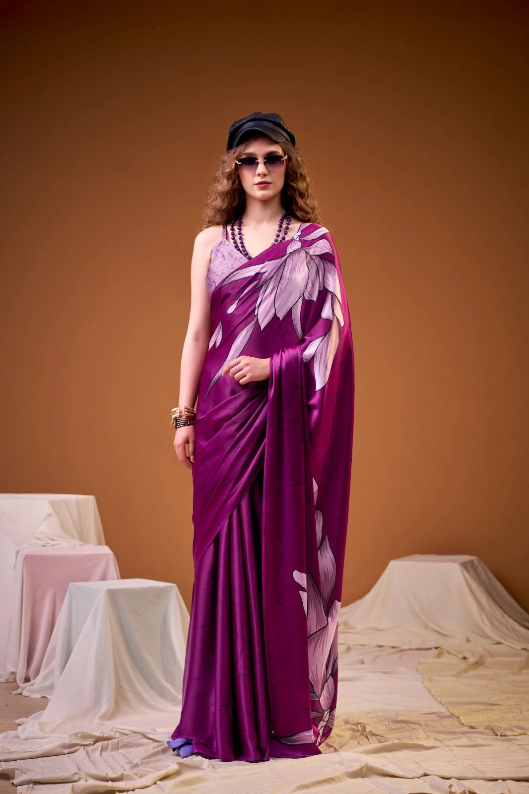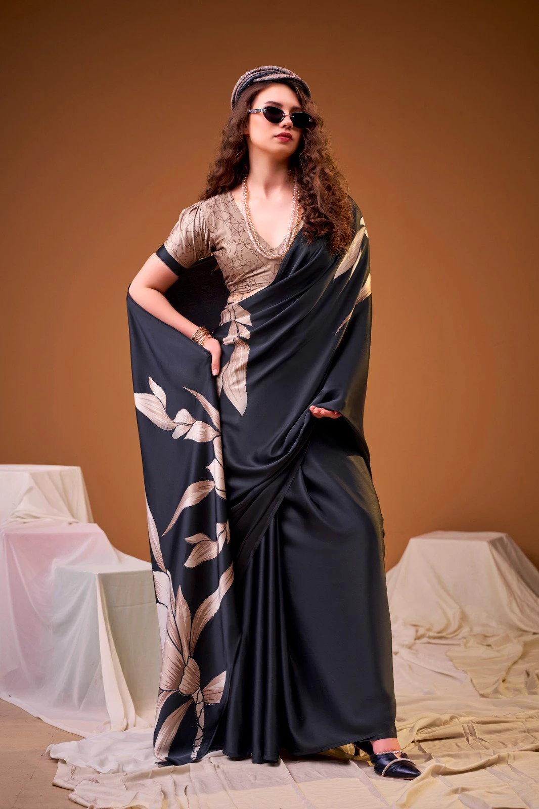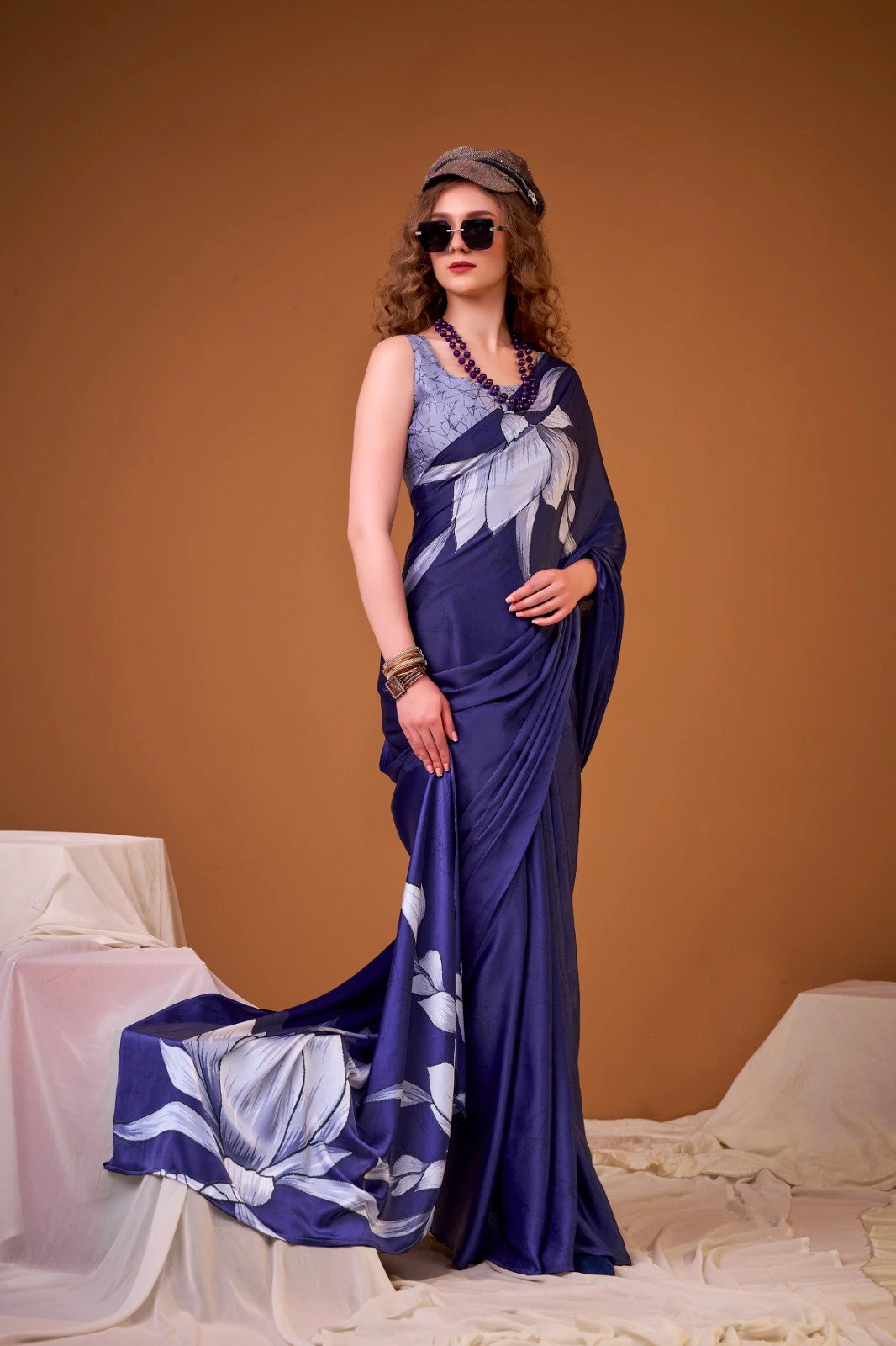 Saree/blouse Satin Silk with Floral Print