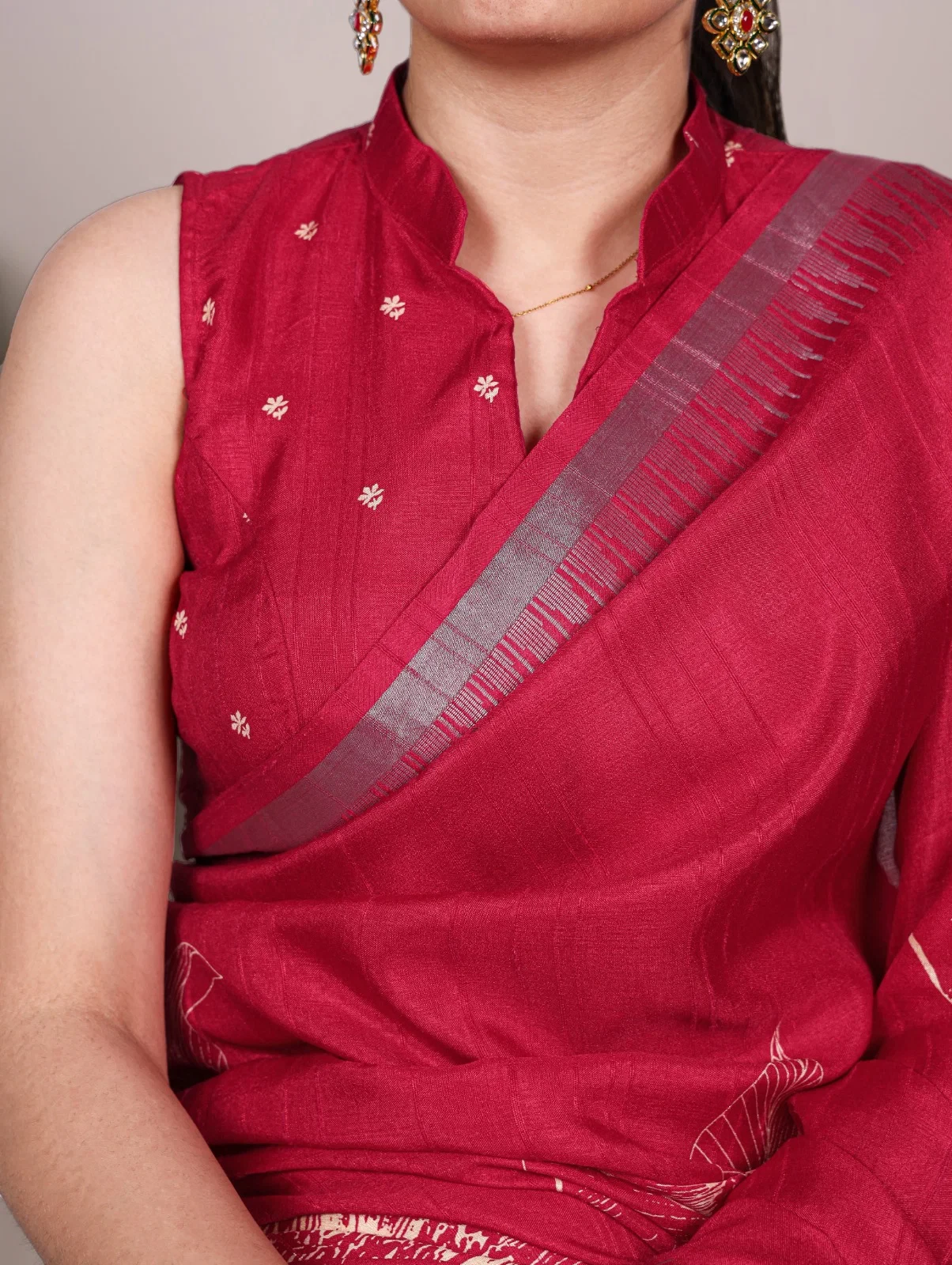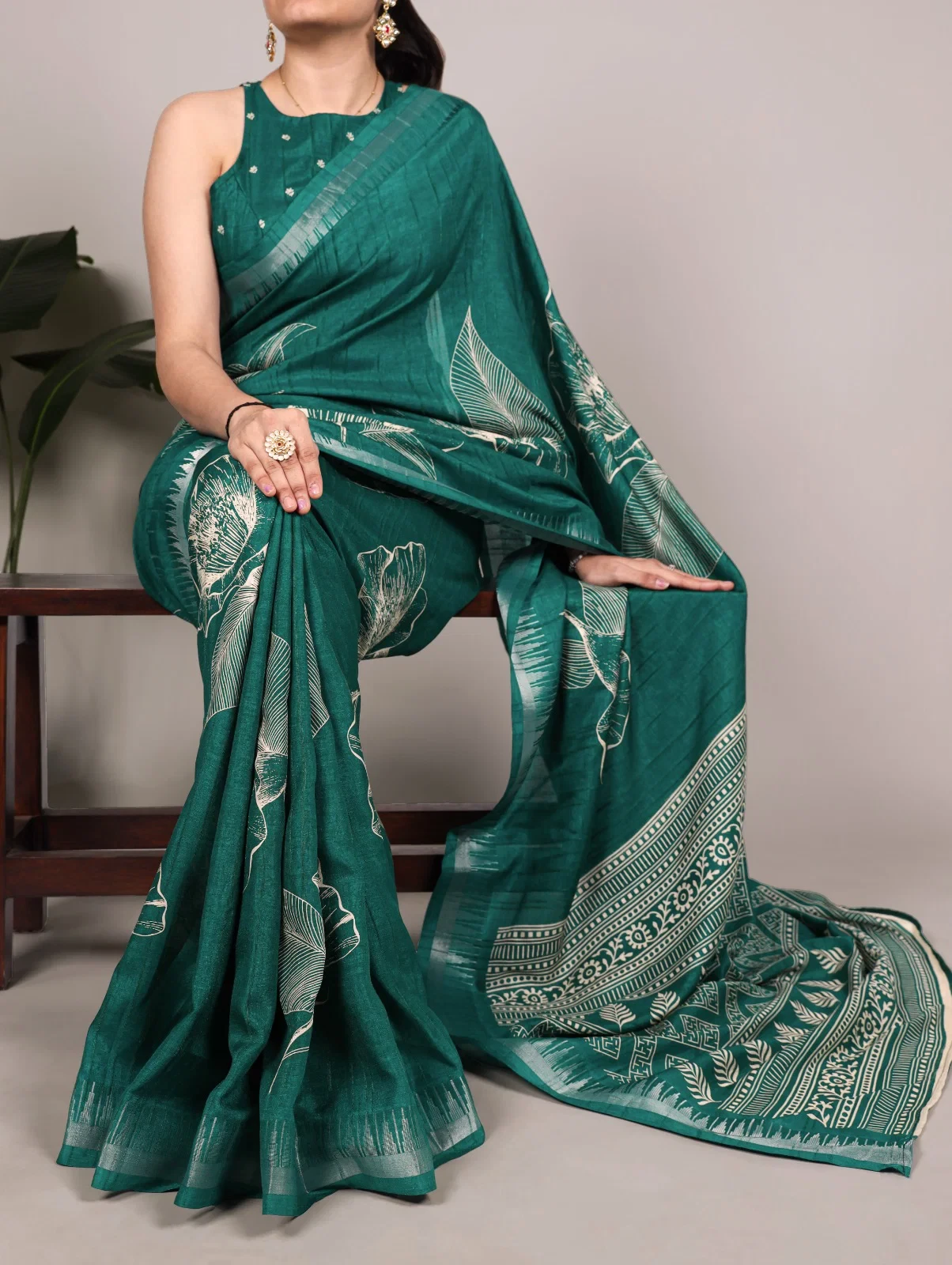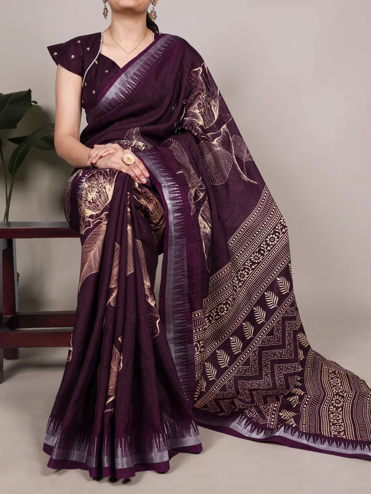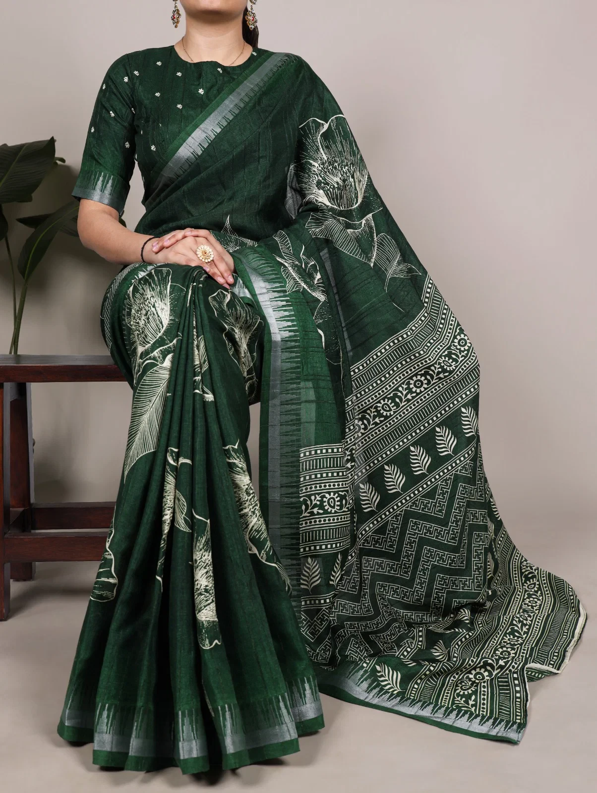 | Saree/blouse | Slub Silk and Floral Printed with Zari Border |