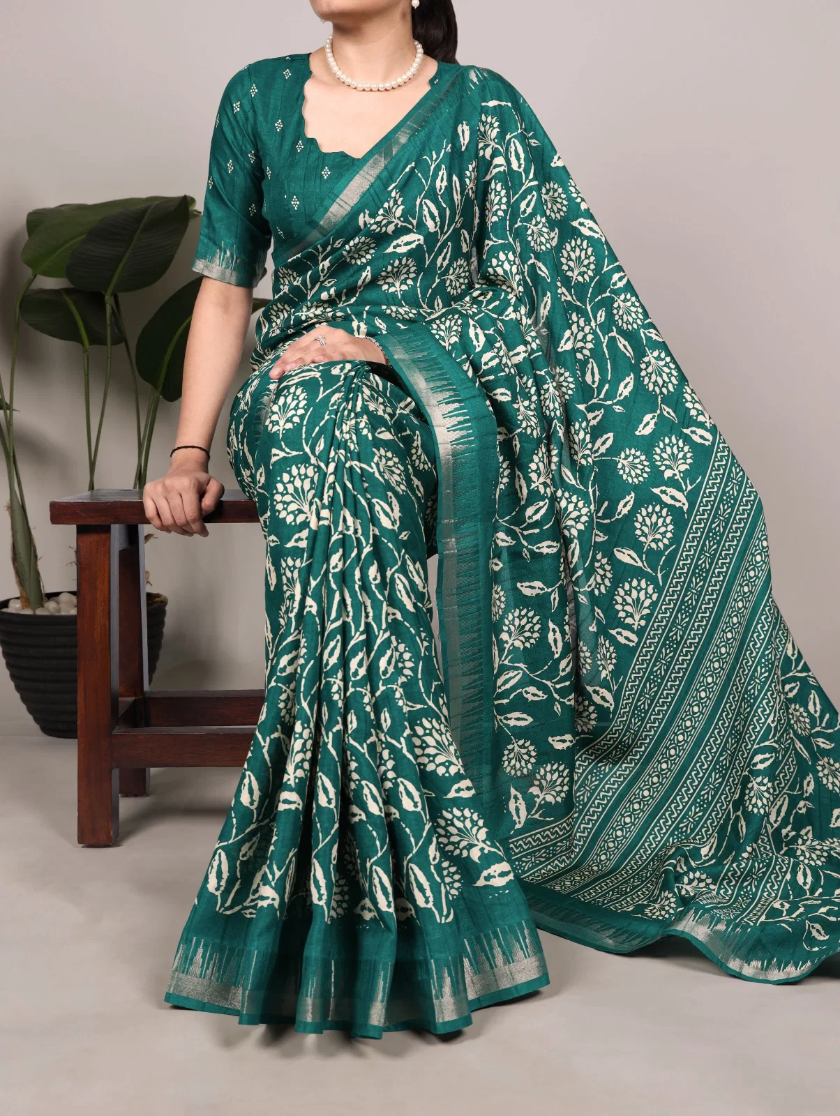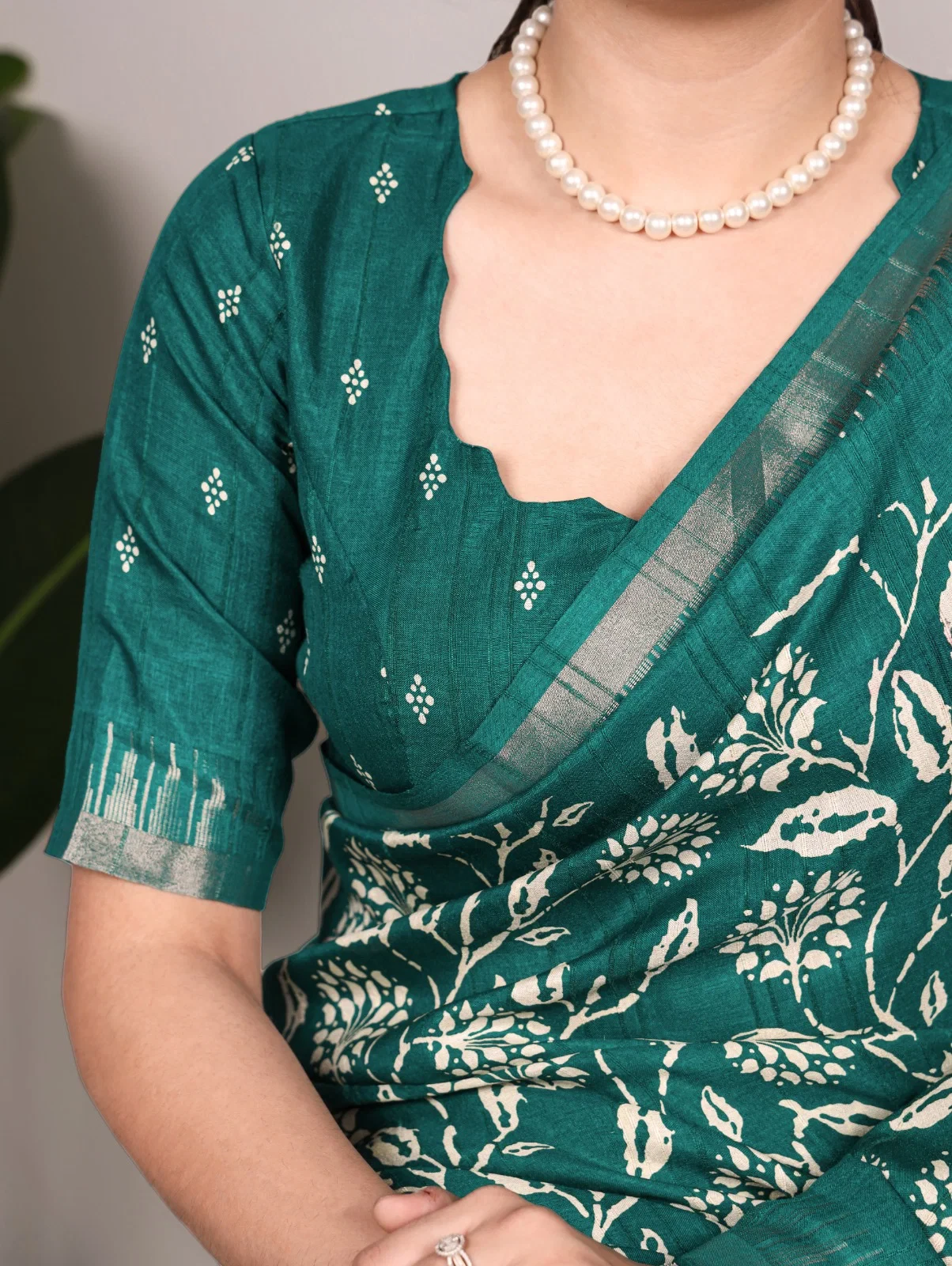Taraa L 7214 Slub Silk Floral Printed Saree Collection