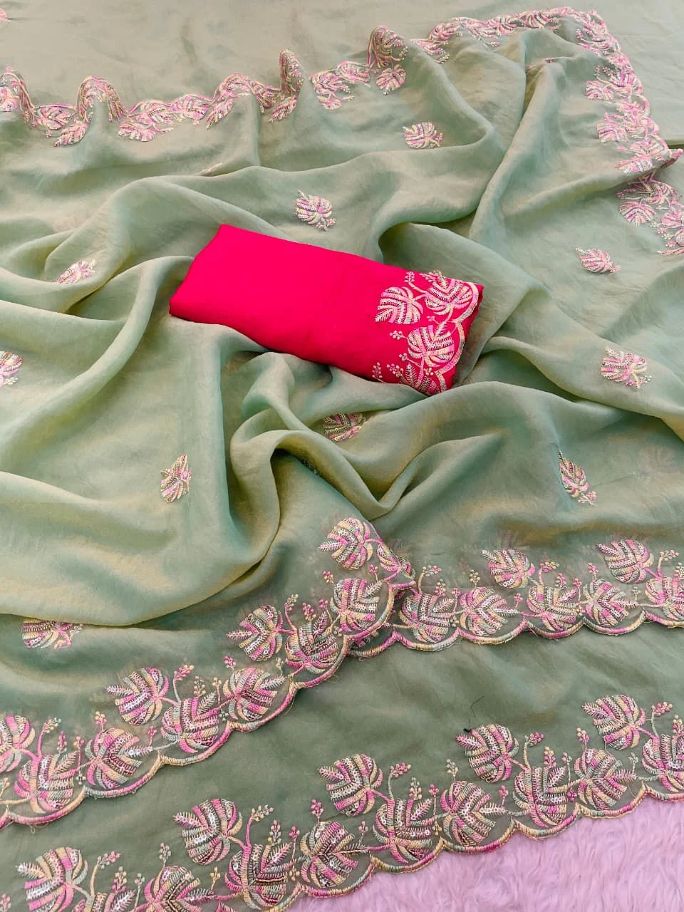 Saree Fabric Moss Chiffon