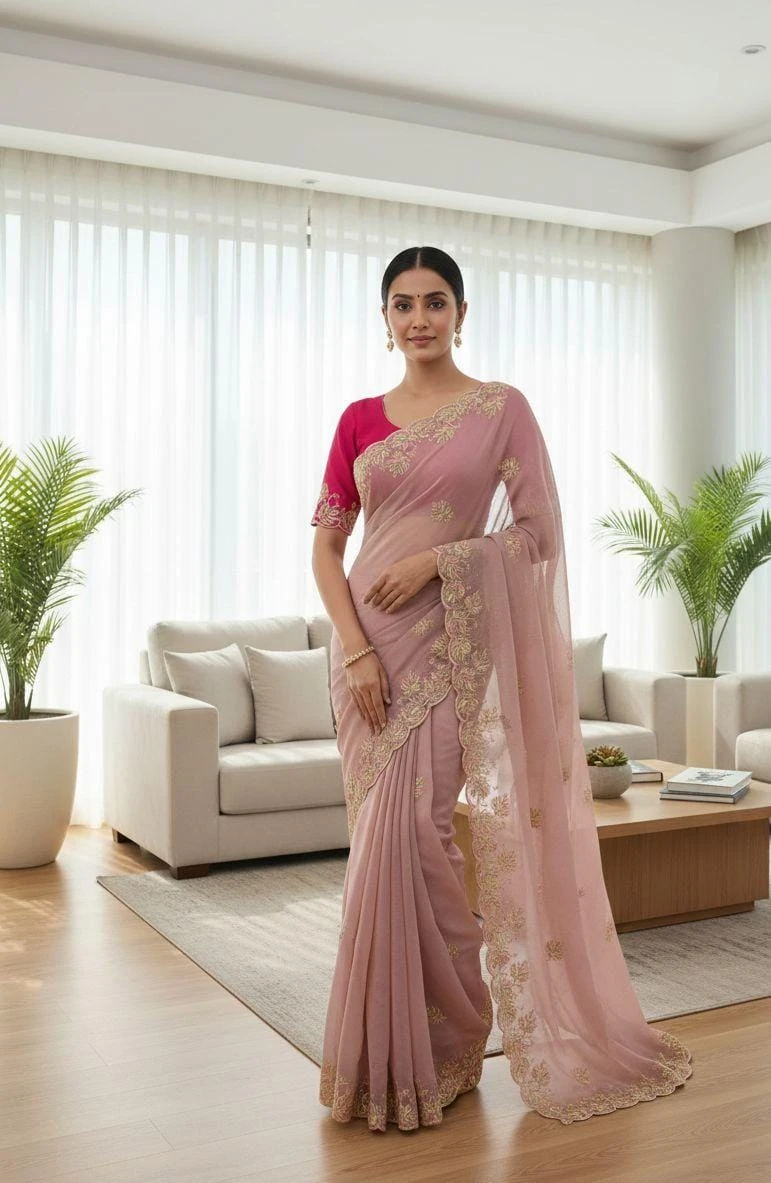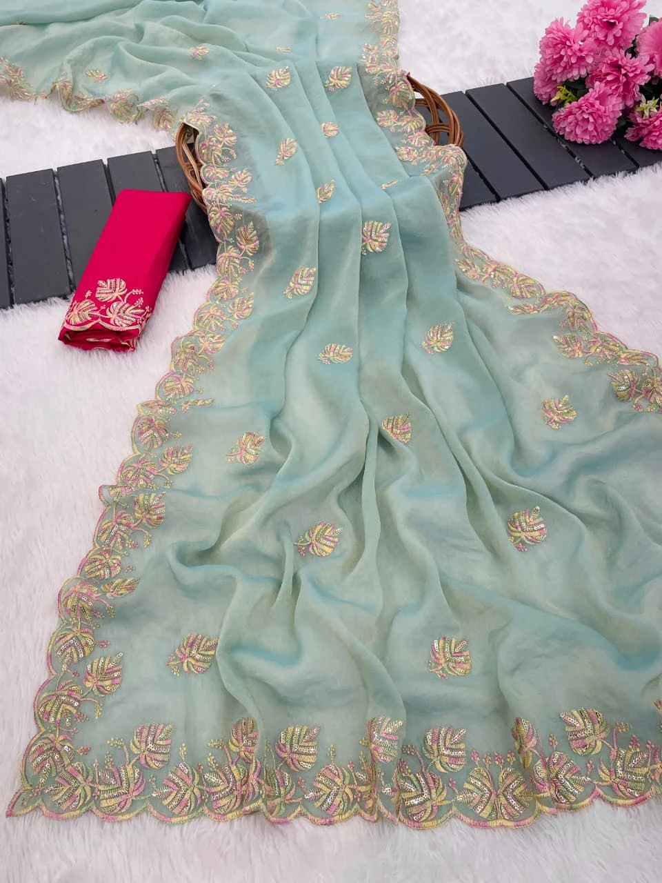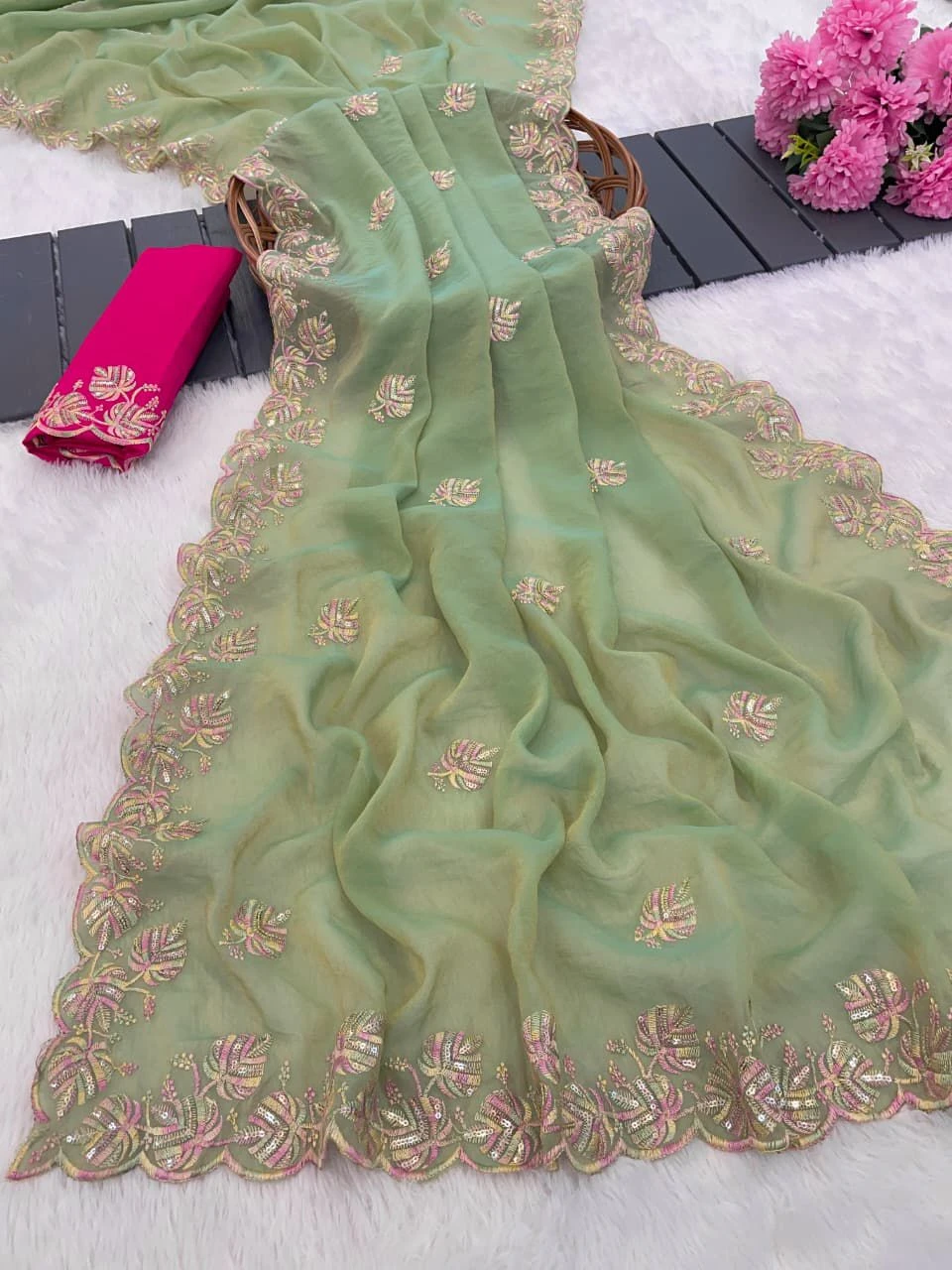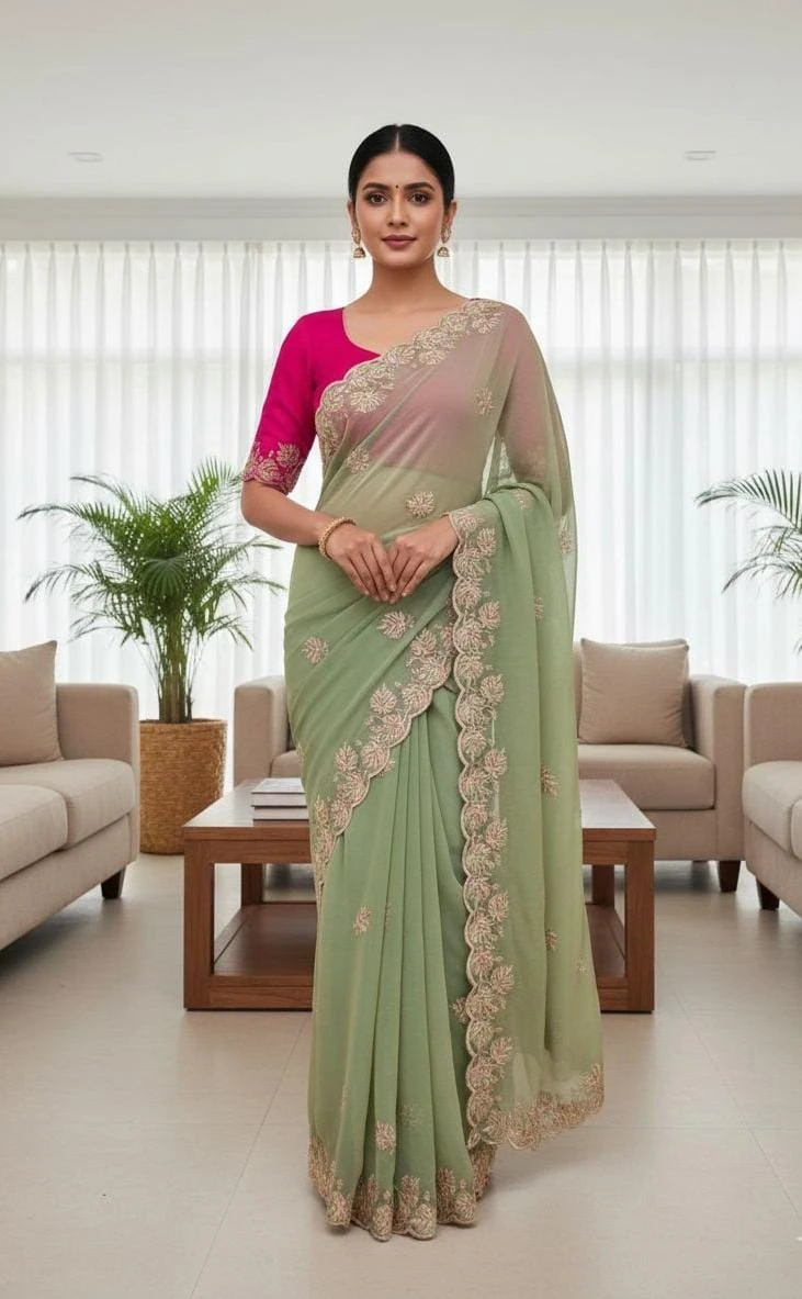 Product Name Vt 829 T Moss Chiffon Multi Thread Worked Fancy Saree Collection