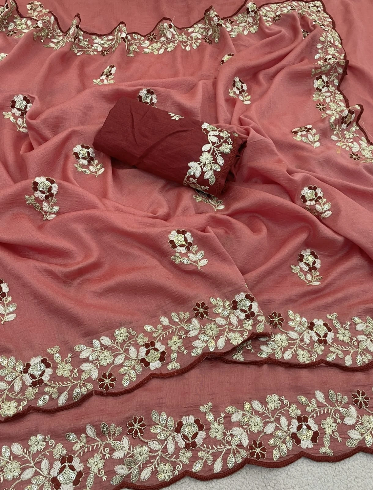 | Product Name | Vt 834 T Soft Vichitra Silk Thread Work Designer Saree Collection |